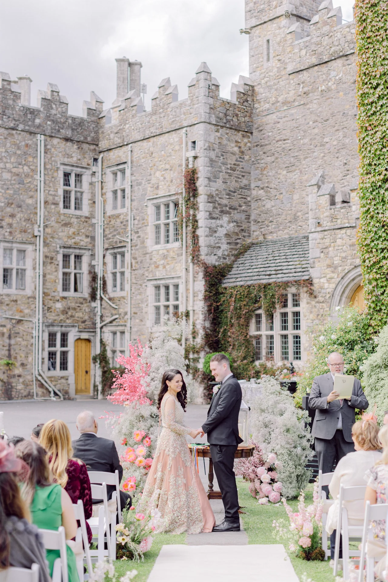 The ceremony was held outdoors with the castle as the beautiful backdrop. It was a gorgeous day in June, and a few guests told us after our ceremony that while we were exchanging rings and saying ‘I dos’, the sun came out from behind the clouds which made the moment even more magical.