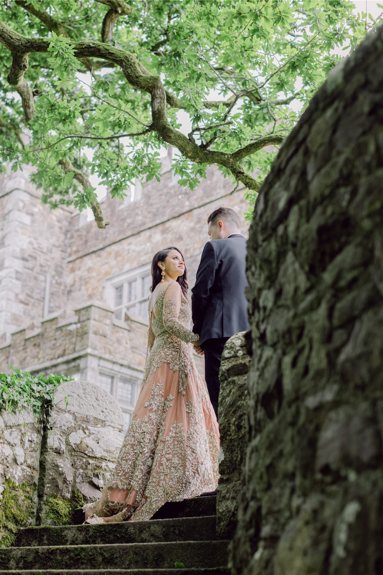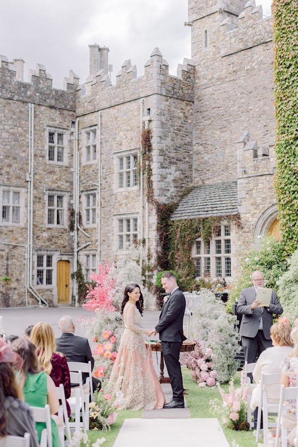 Residing in Carlow, Nehdia and Dónal met as work colleagues before falling head over heels for one another. For their wedding, they honoured both their heritages by incorporating traditions like Irish handfasting, bhangra dancers and a Pakistani bridal dress.