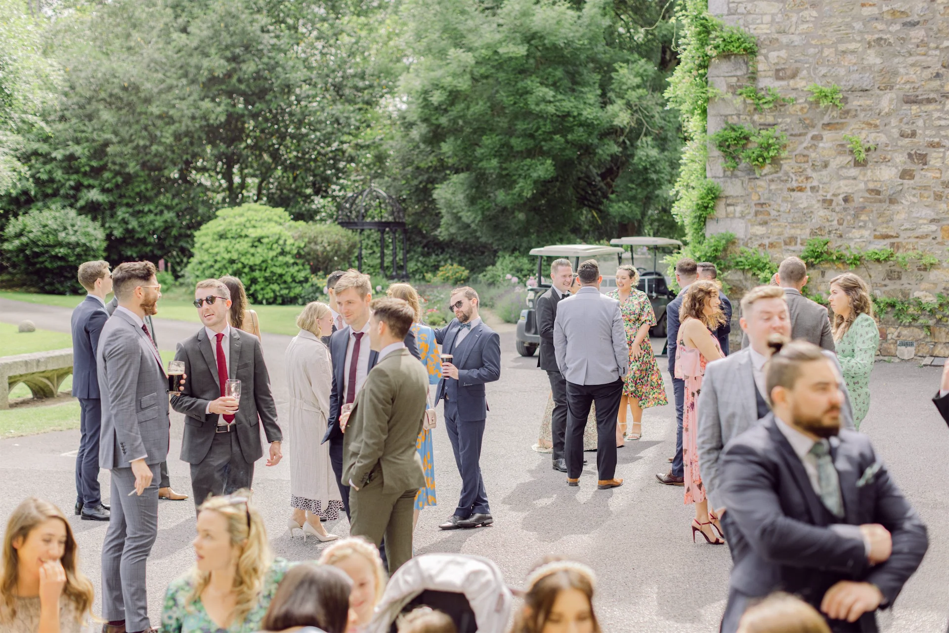 For the reception, the guests were welcome to enjoy themselves outside the castle, indoors beside the fireplace or close to the bar, wherever they fancied. It was like a big house party; the only difference is that your house is a castle!