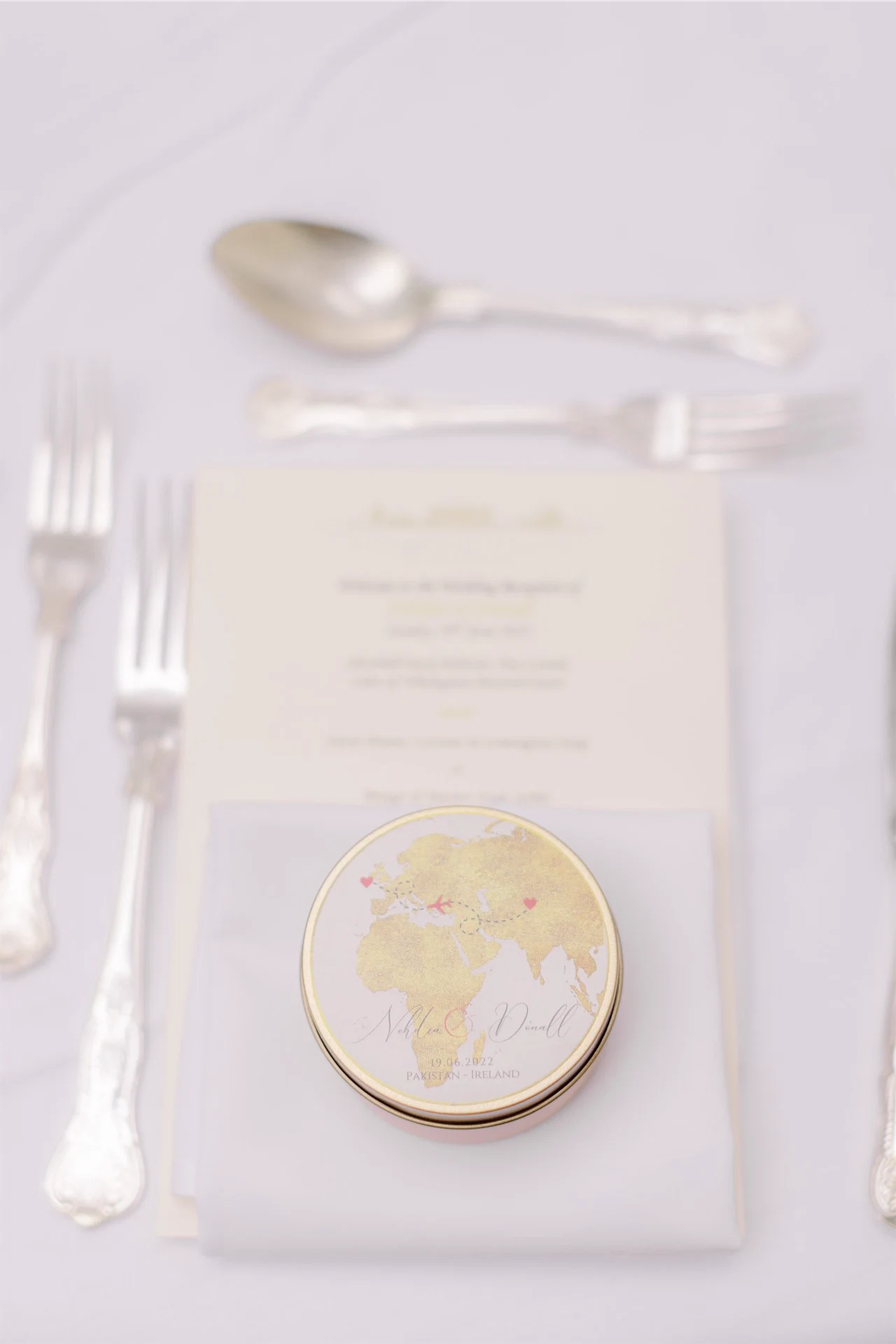 I did a complete DIY for the wedding invites and table plans with the help of Dónall’s cousin, graphic designer Laura Kenny. She was brilliant and understood exactly the look I was going for. It was a complete hands-on process; buying the paper, cutting each individual piece and roughing up the edges to make it look vintage.