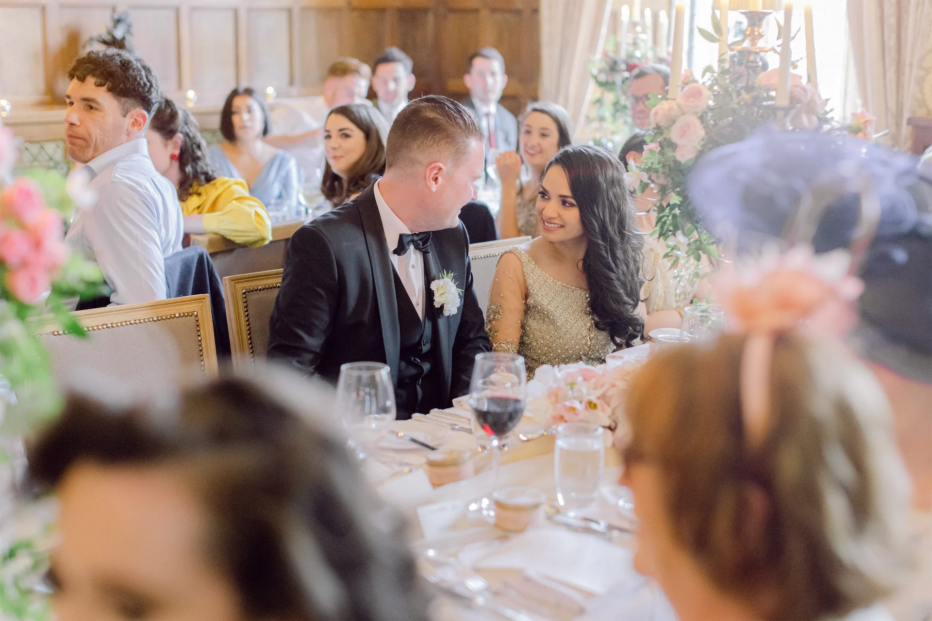 The dinner was held in Munster Room within the Castle. The room itself is so breath-taking with old-world vibes (much like the rest of the Castle), ‘less is more’ was the general rule of thumb as it did not need much decorating. Tina decorated the candelabras and the fireplace with some flower arrangements, and it did the trick.