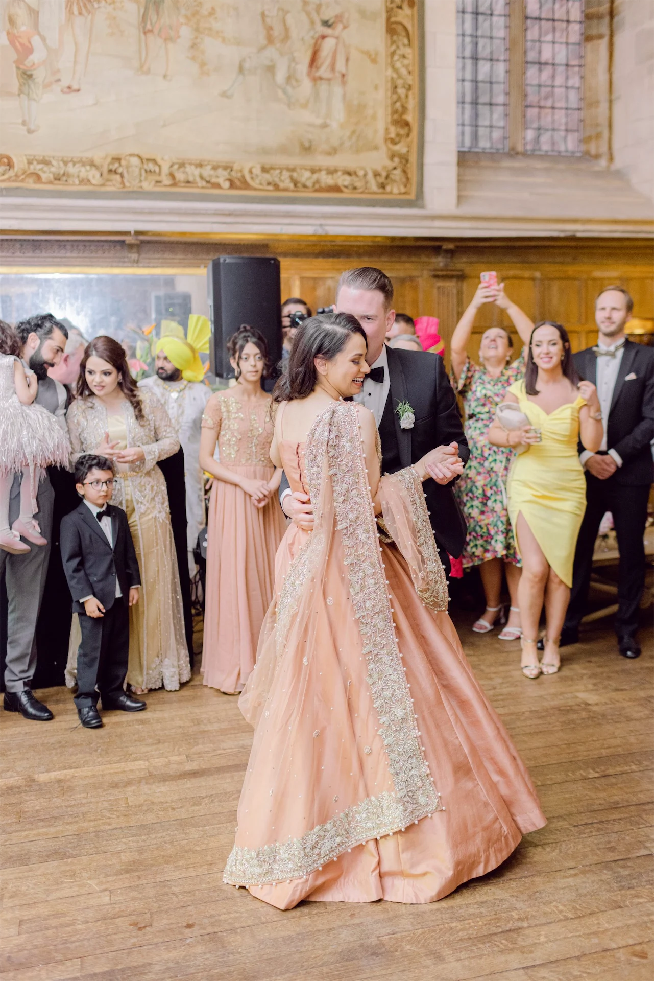 I changed a few things around (colour, sleeves, back design, etc.). The dress was truly a bespoke gown with a lehenga skirt underneath. I also included a matching choli (crop top) to change into after dinner to be able to dance. The dress was hand embellished, and the gown alone weighed a whopping 15lbs (RIP my legs!).