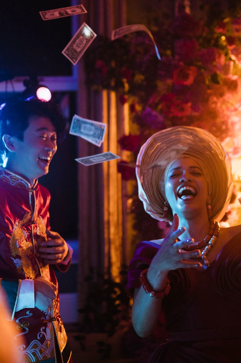 Wei continued to serenade the guests throughout the drinks reception, during which time we ran to change into our second looks to make our entrance back into the dining room. As Terry’s family hail from Hong Kong, we held a Chinese tea ceremony before dinner in place of speeches, and for me as an Igbo Nigerian, a Kola Nut ceremony was performed by my uncle. Dinner was all prepared in-house by Jane’s Kitchen.