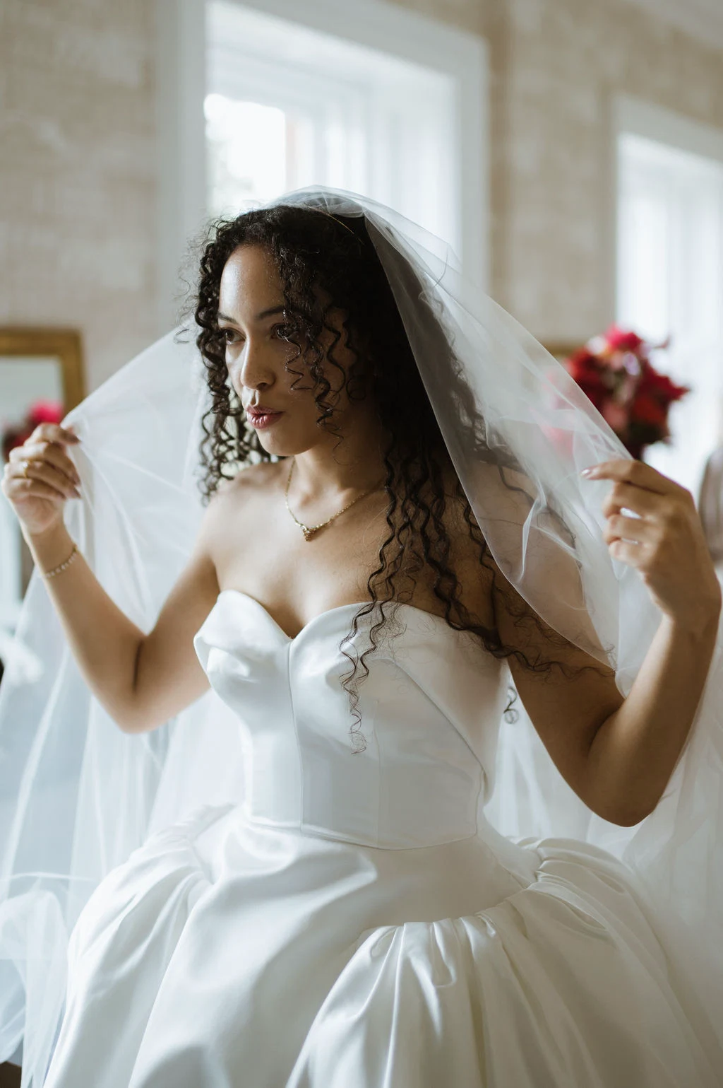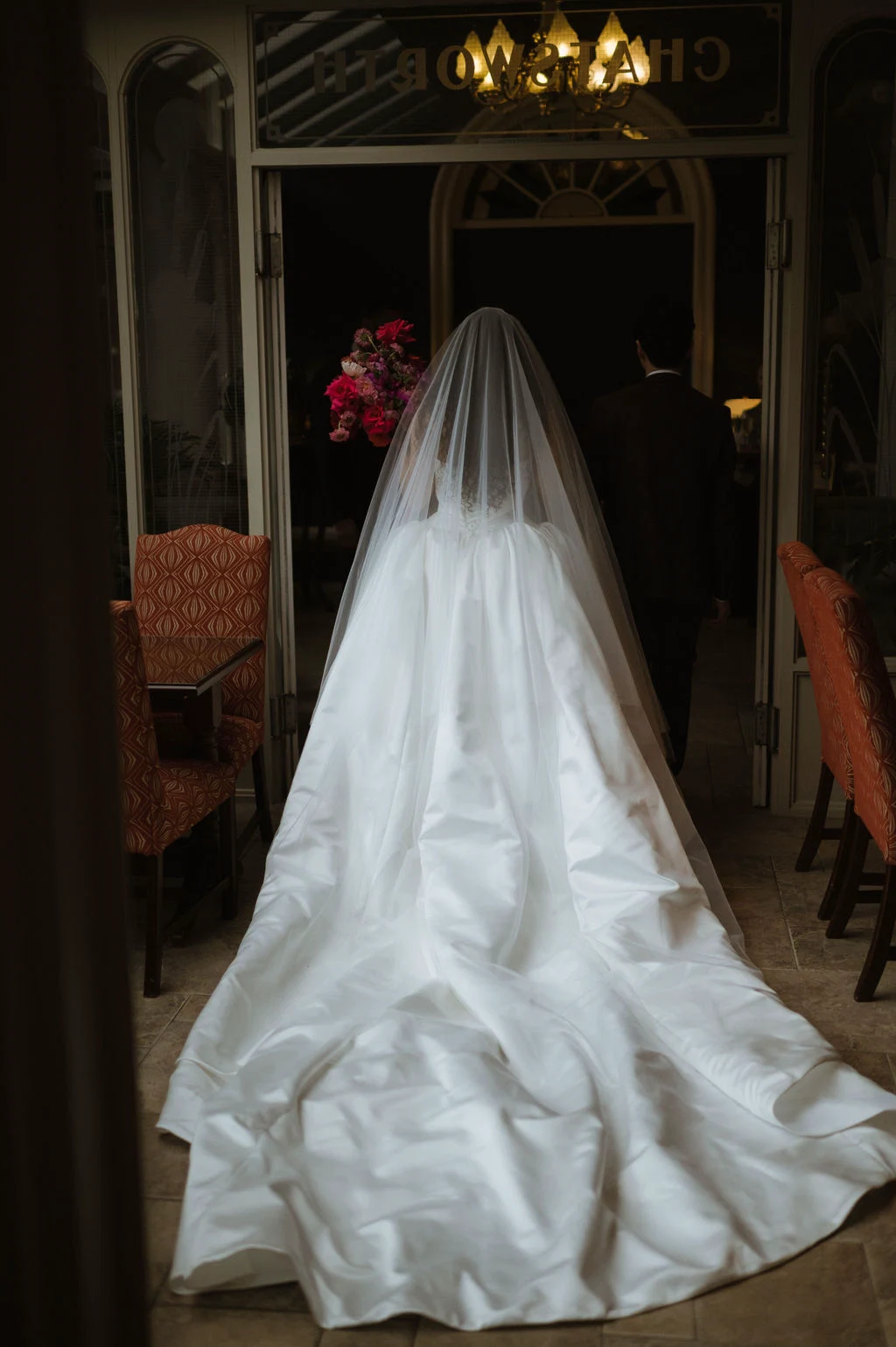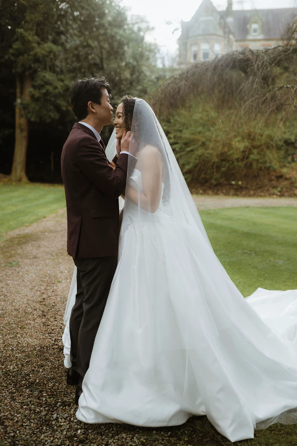 Although I was interested in dresses by Eva Lendel, the boutique carrying them in Belfast was unable to provide a sample to try on, so I took a gamble and ventured further afield. I found my dream ceremony dress and veil from Chinese bridal designer Dear White based out of Beijing. My evening look was from Linh Bridal on Etsy.