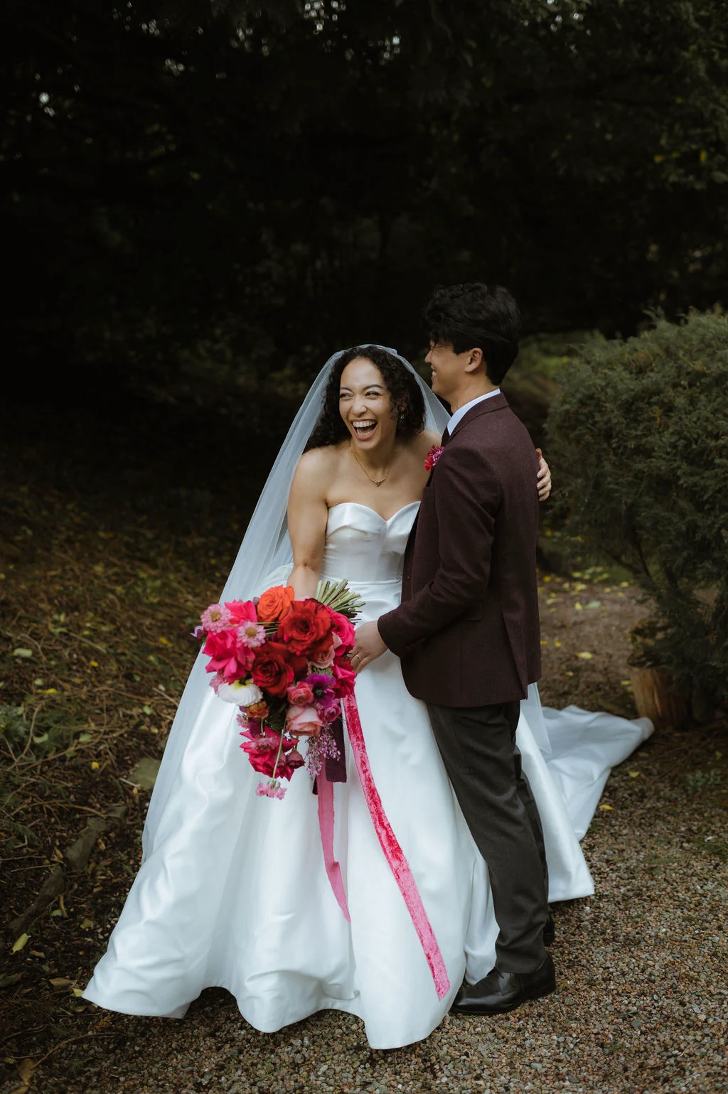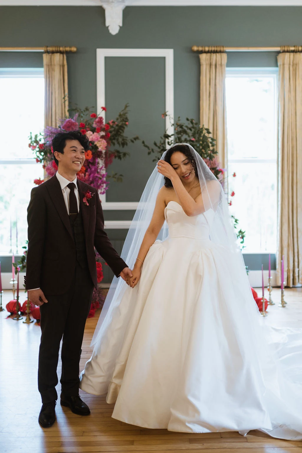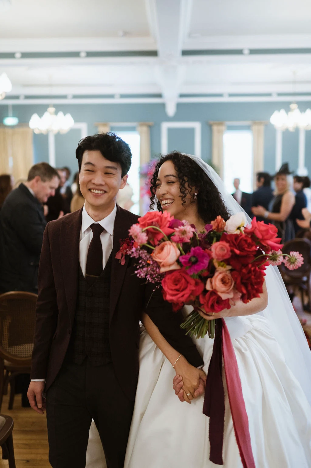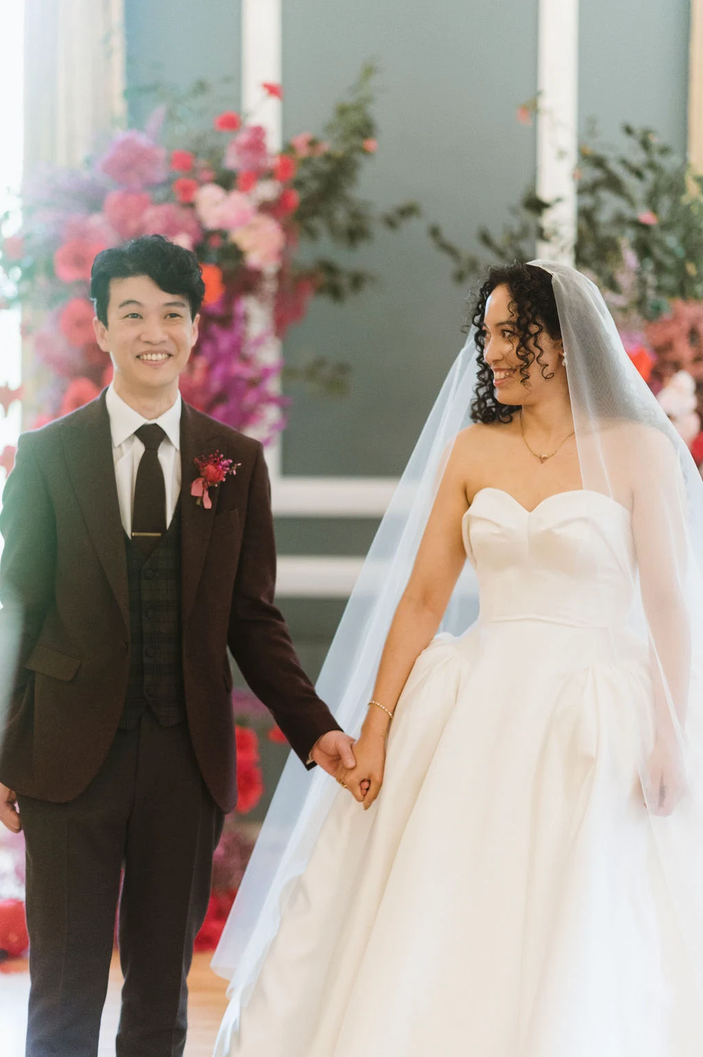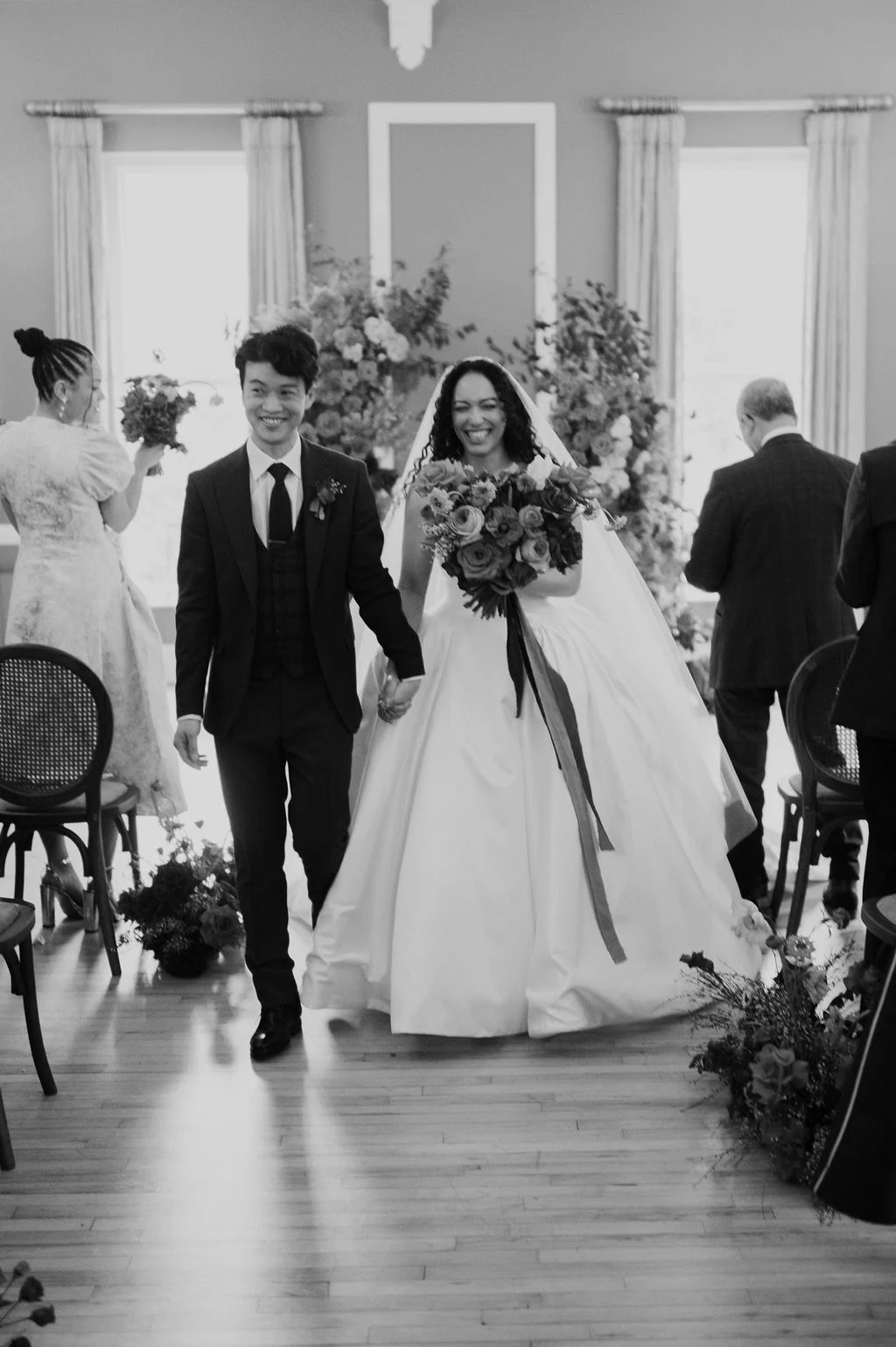 We had the amazing Jean Barrett Quinn officiate our humanist ceremony with such care, empathy and joy in bringing our story to life. Although we had close to 70 guests, the ceremony felt intimate, and we faced out into the aisle so we could see all our guests’ faces throughout the ceremony. We were also joined by musician Wei Deng, an incredibly talented guzheng player, in memory of Terry’s mother who also played guzheng.