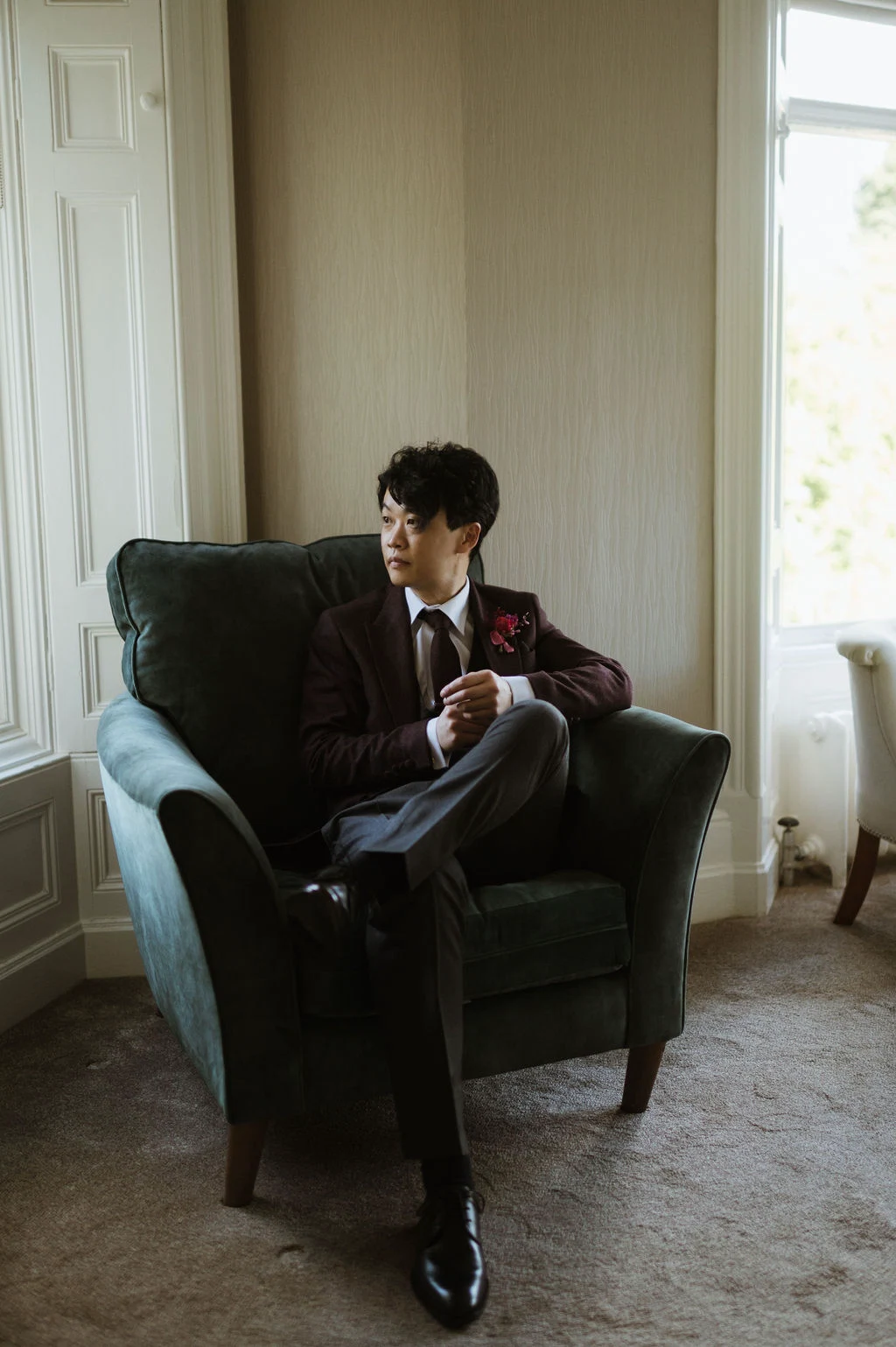 Terry wanted to incorporate a little colour into his ceremony suit and found the perfect ensemble from Freddie Hatchet in Belfast. He purchased his evening look from a wedding clothing specialist on AliExpress.