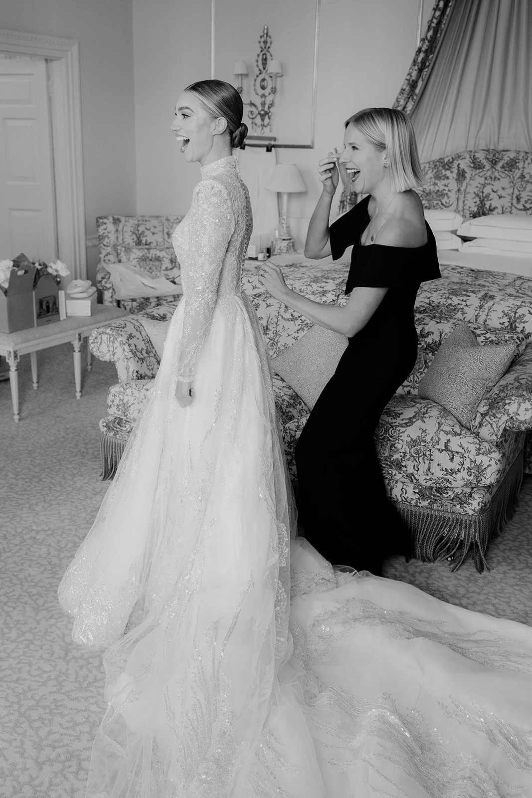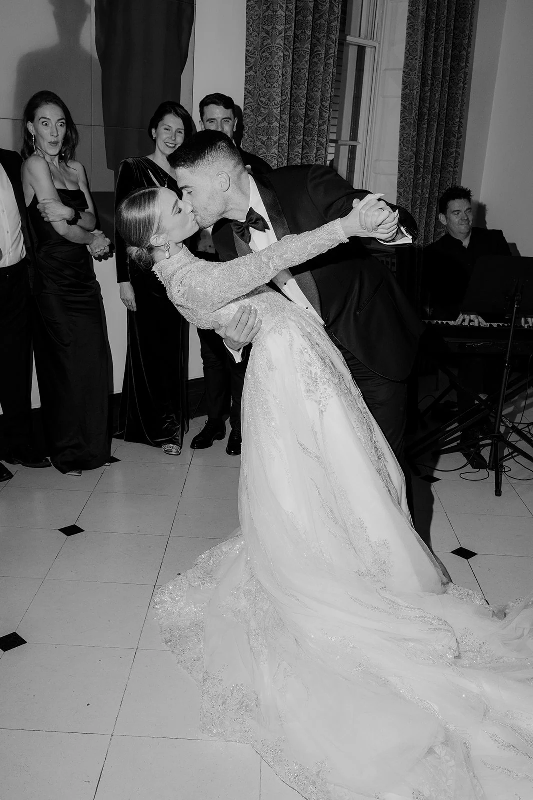 Hearing the opening notes of Pachelbel’s Canon with the realisation that finally, after all the dreaming and anticipation, it was really our wedding day. Everything about the ceremony. Nailing our dip and kiss on the first dance. Seeing our guests at their most glamorous, black-tie best. The food and champagne! Suzanne Carla’s final song when all our guests were filling the dancefloor and singing at the top of their lungs. Going to bed that night in The Merrion’s incredible bridal suite feeling like we had had our most perfect wedding day.
