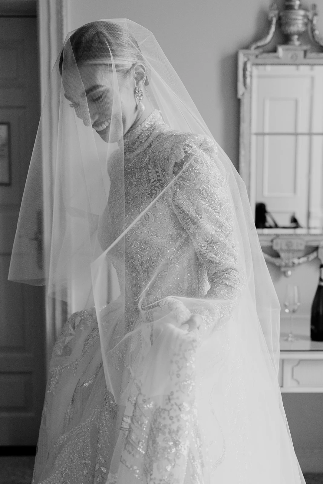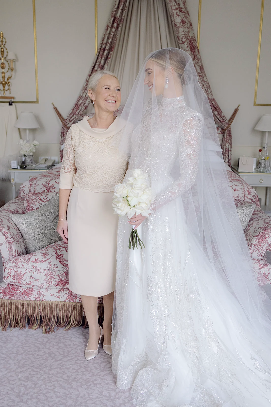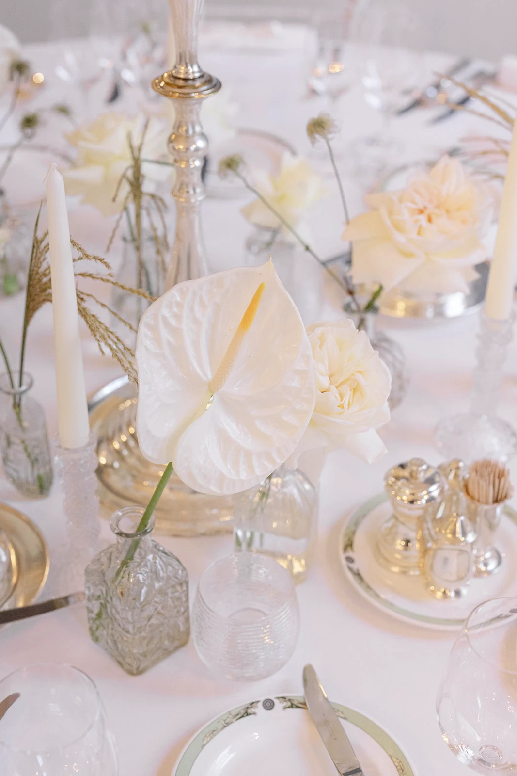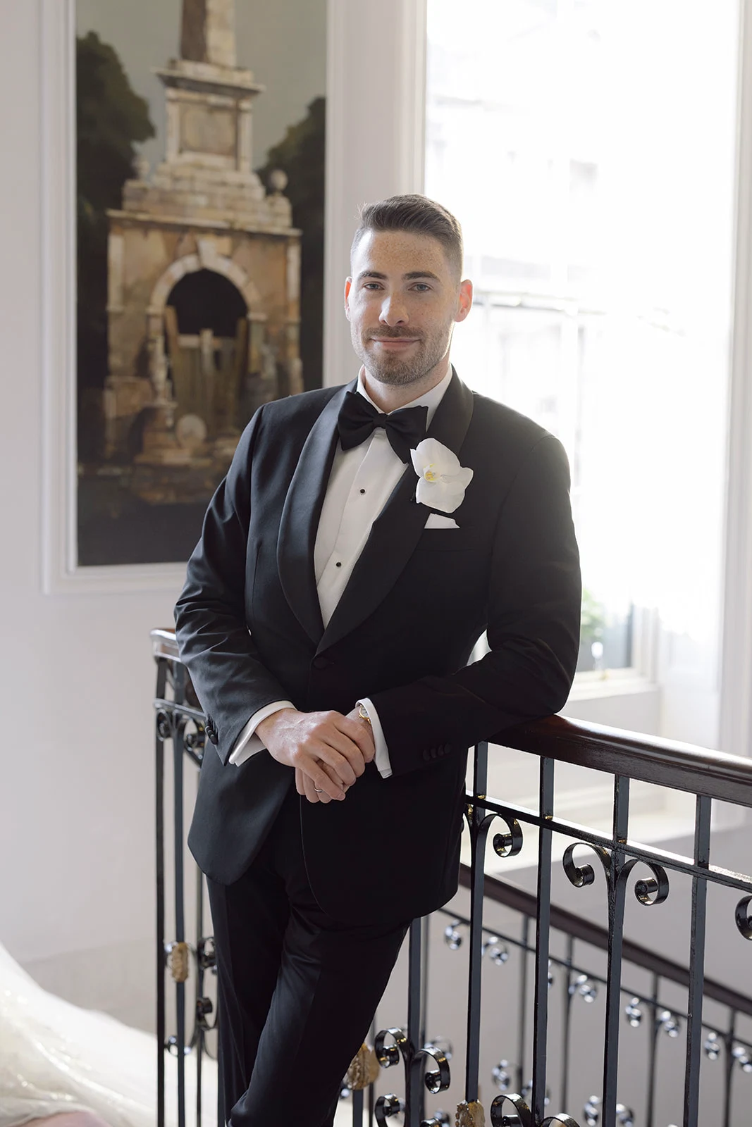 As The Merrion is part of such a gorgeous, restored Georgian townhouse with high ceilings, chandeliers, and ornate cornicing, we didn’t want to take too much attention away from the beautiful décor. We chose all-white florals, keeping them greenery-free as we wanted an ethereal, intensely white look.