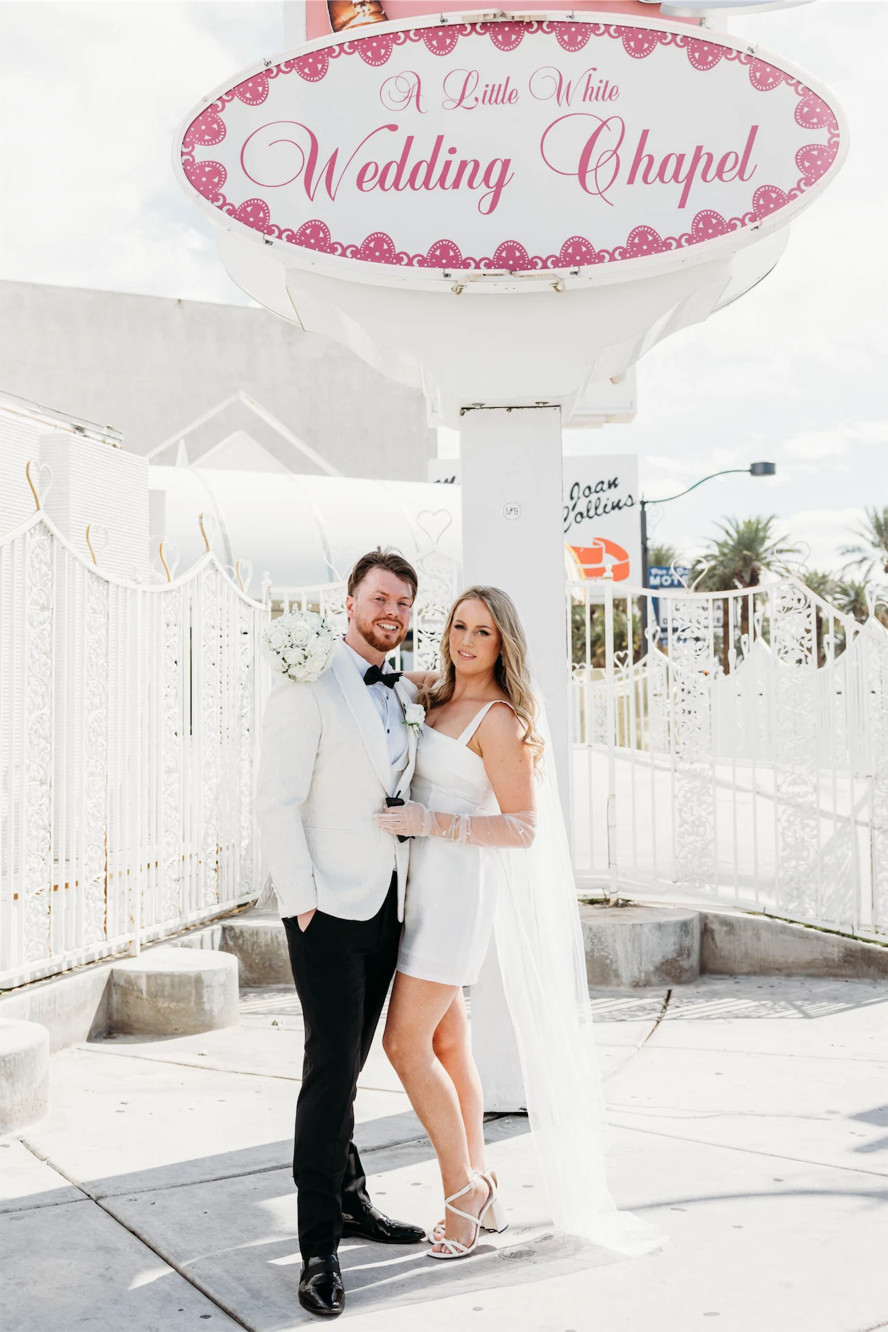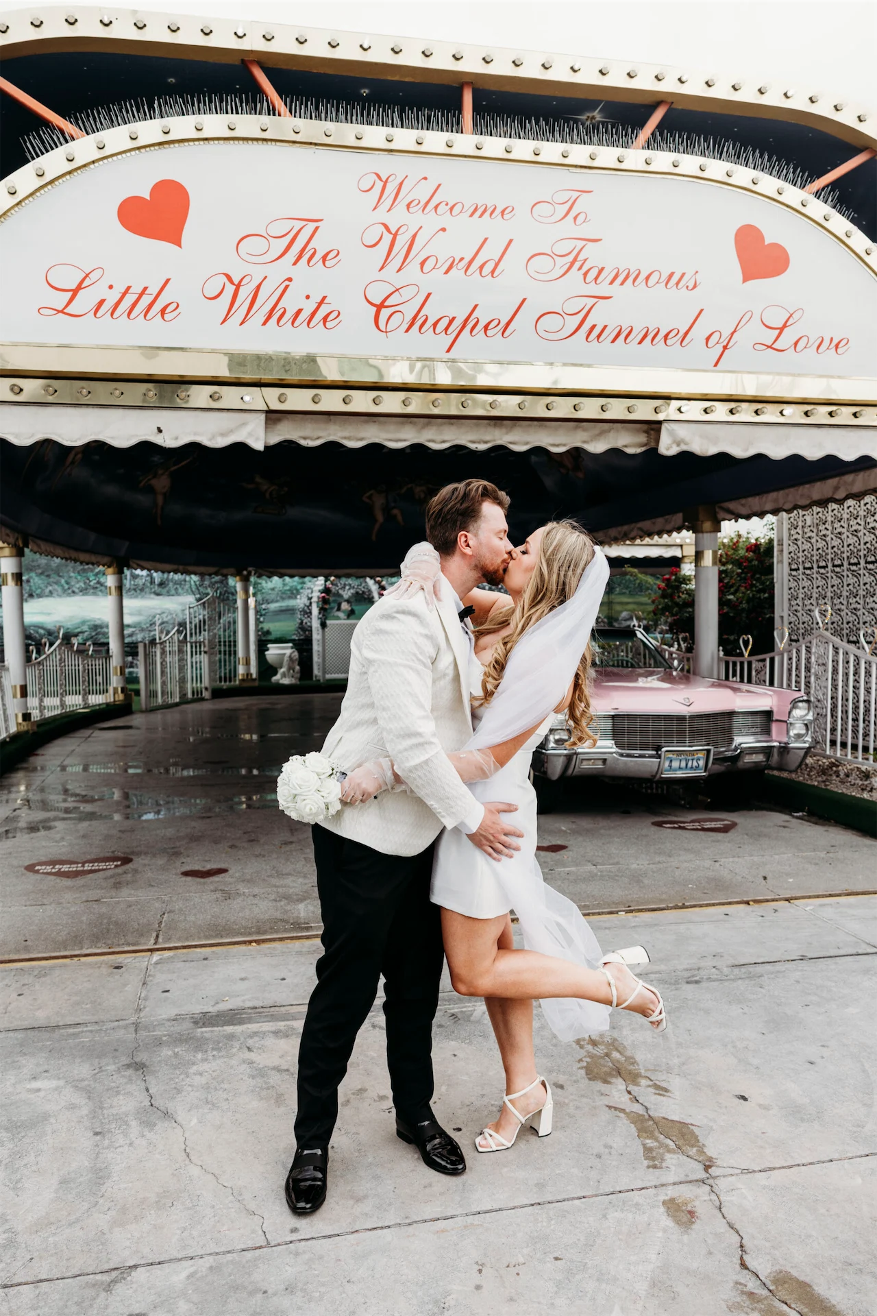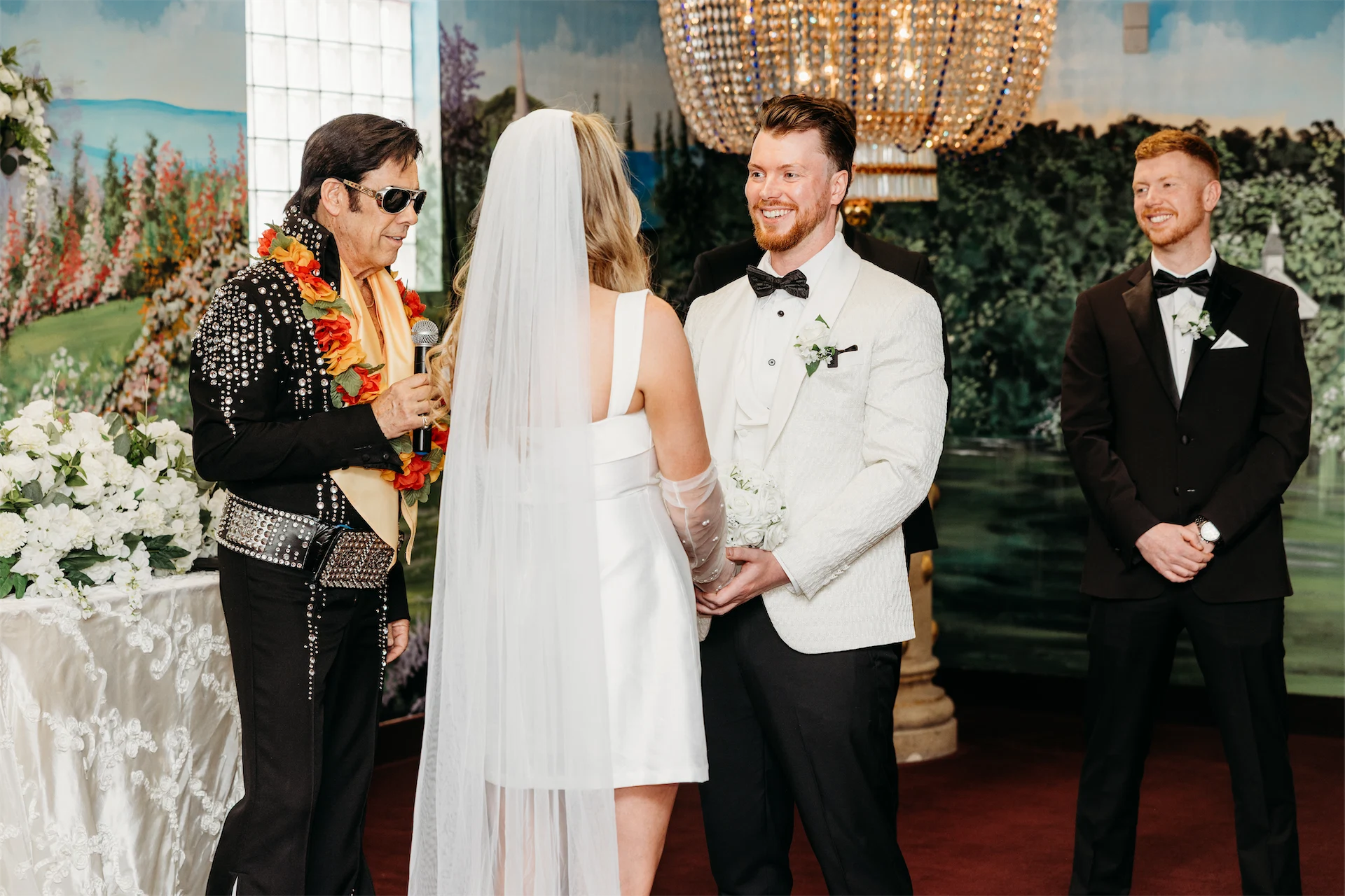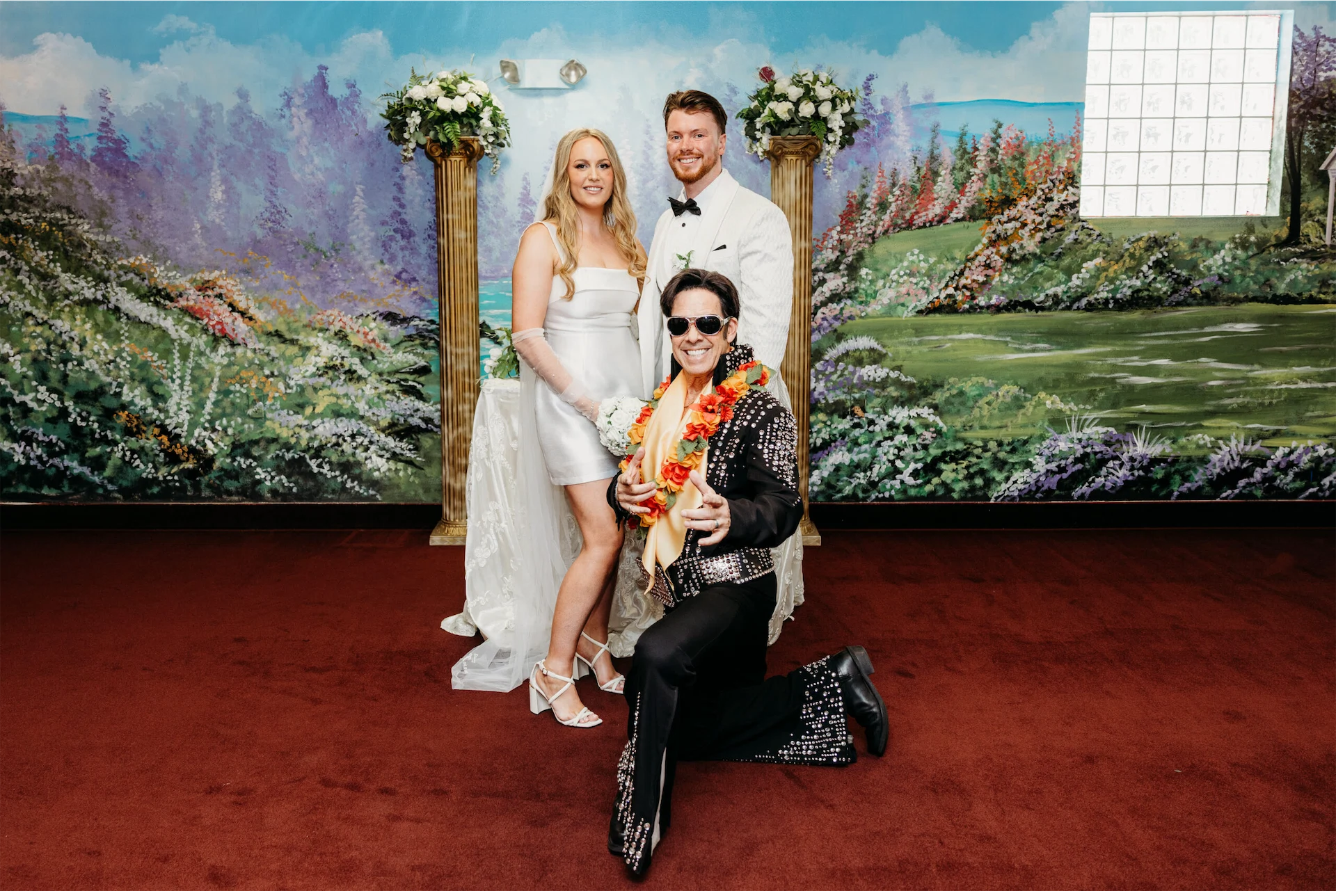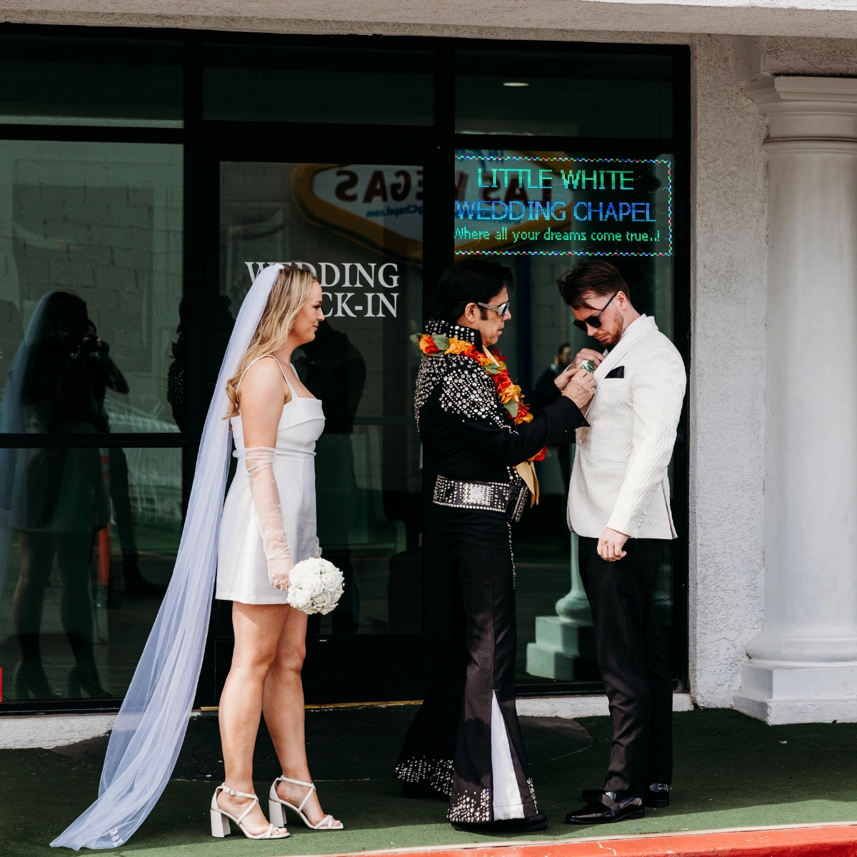 Zoë and Kevin tied the knot in true Las Vegas style at the iconic Little White Chapel, with none other than Elvis himself officiating the ceremony.