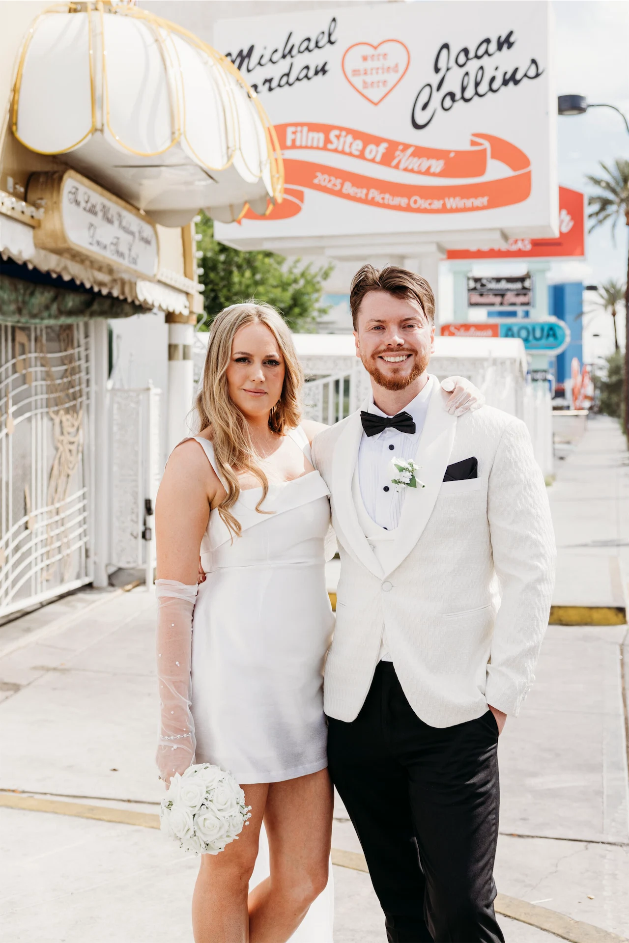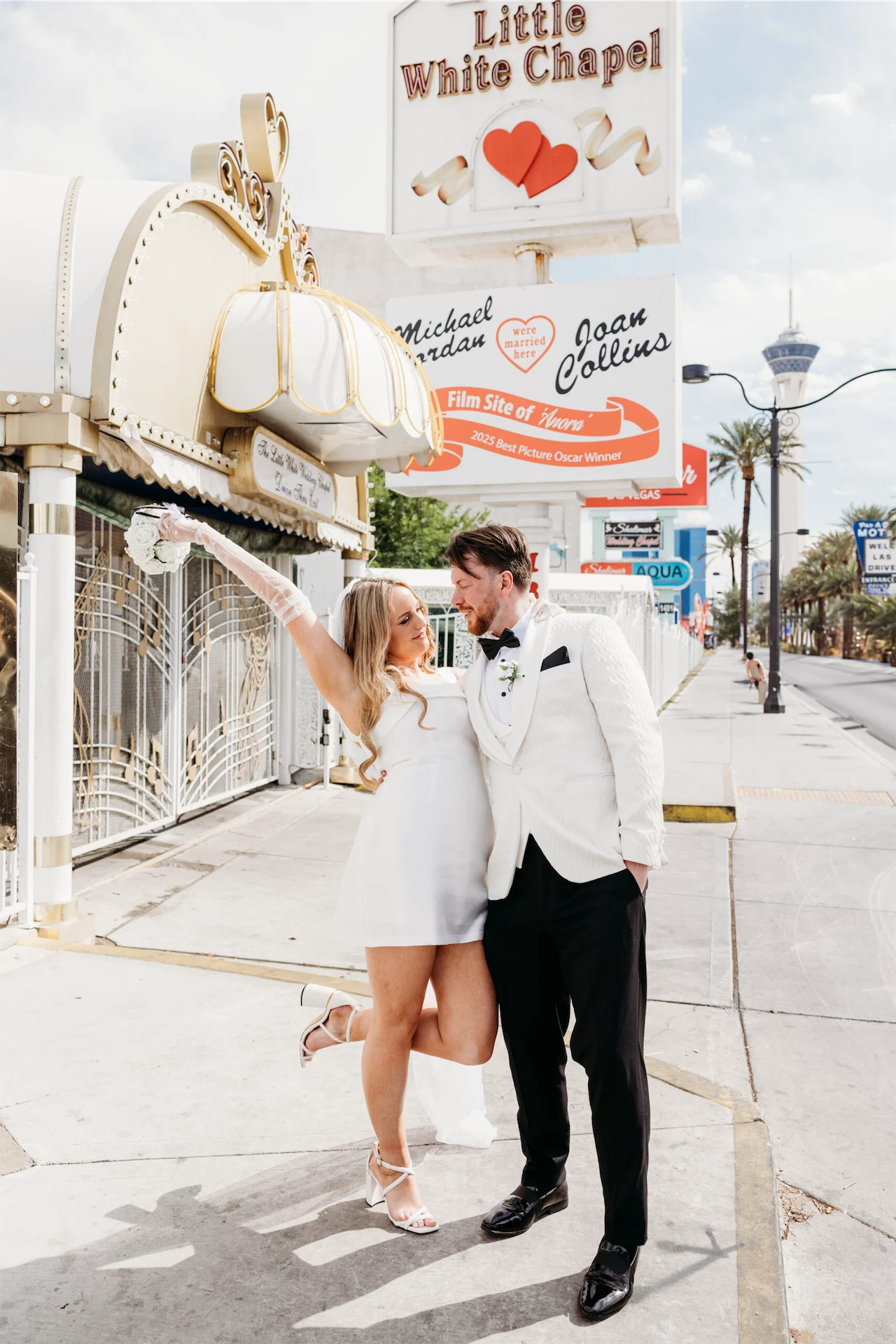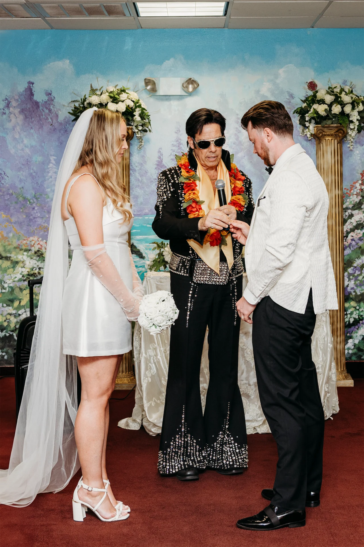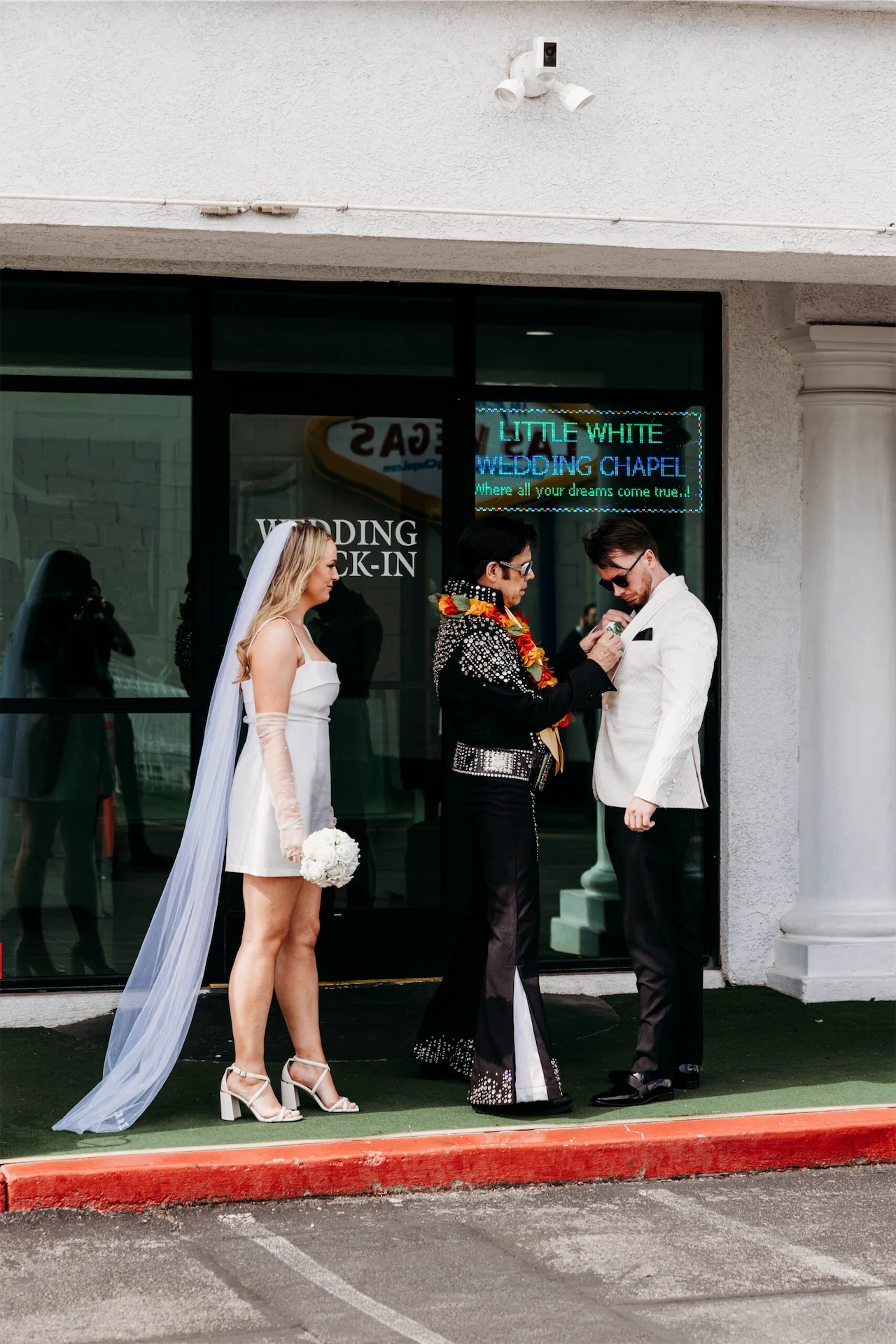 Zoë and Kevin tied the knot in true Las Vegas style at the iconic Little White Chapel, with none other than Elvis himself officiating the ceremony.