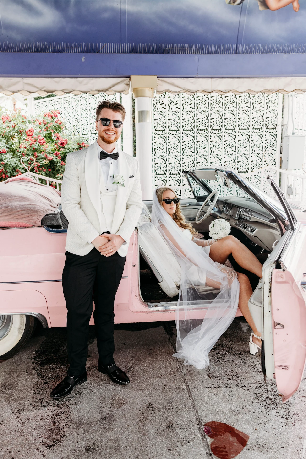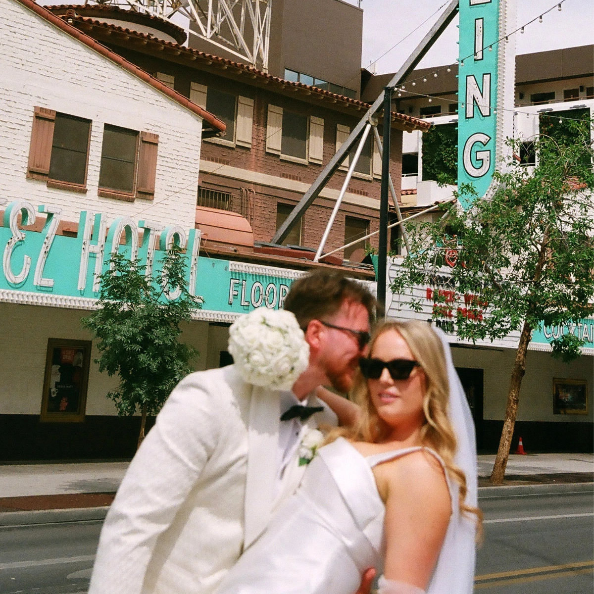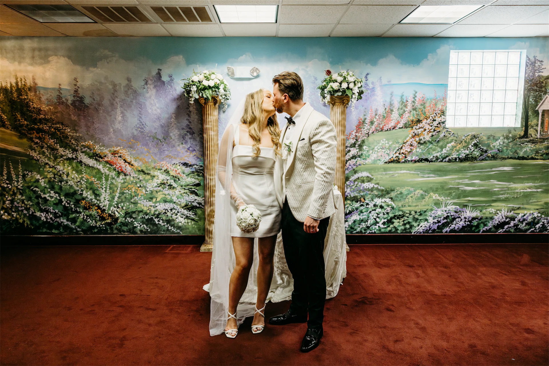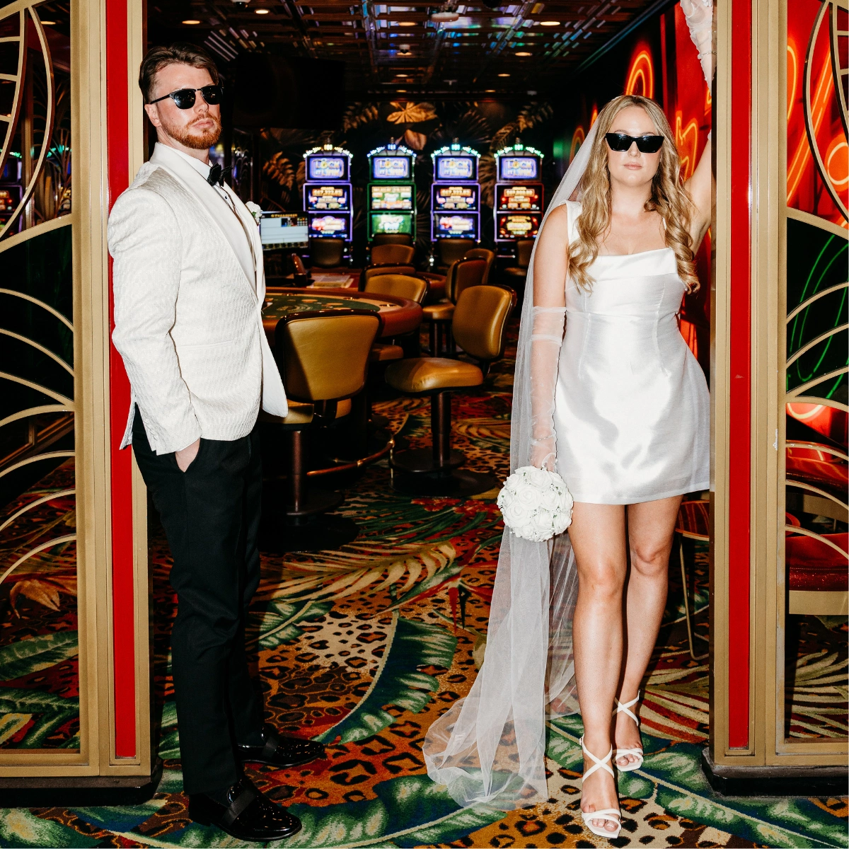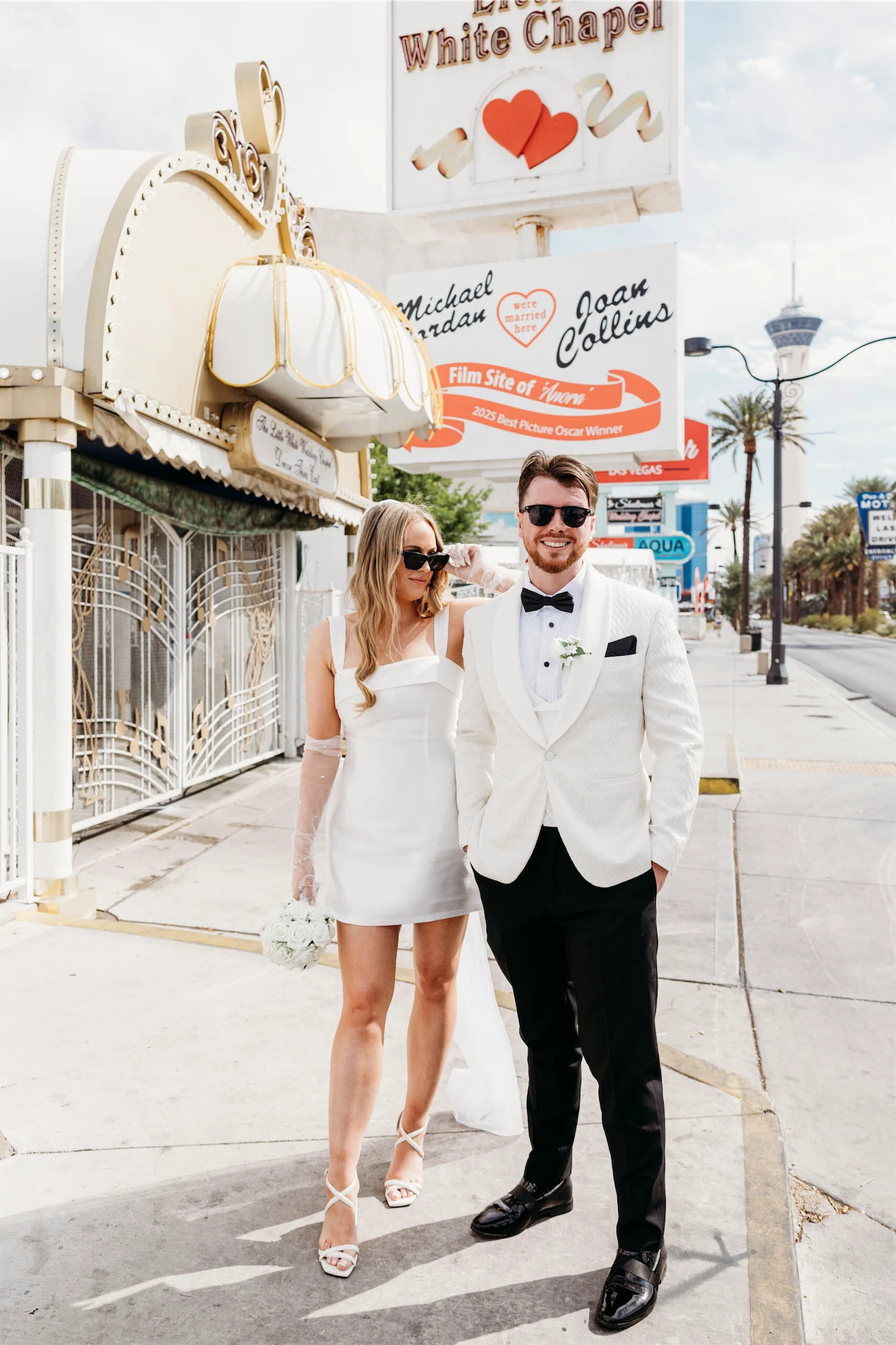 Zoë and Kevin tied the knot in true Las Vegas style at the iconic Little White Chapel, with none other than Elvis himself officiating the ceremony.
