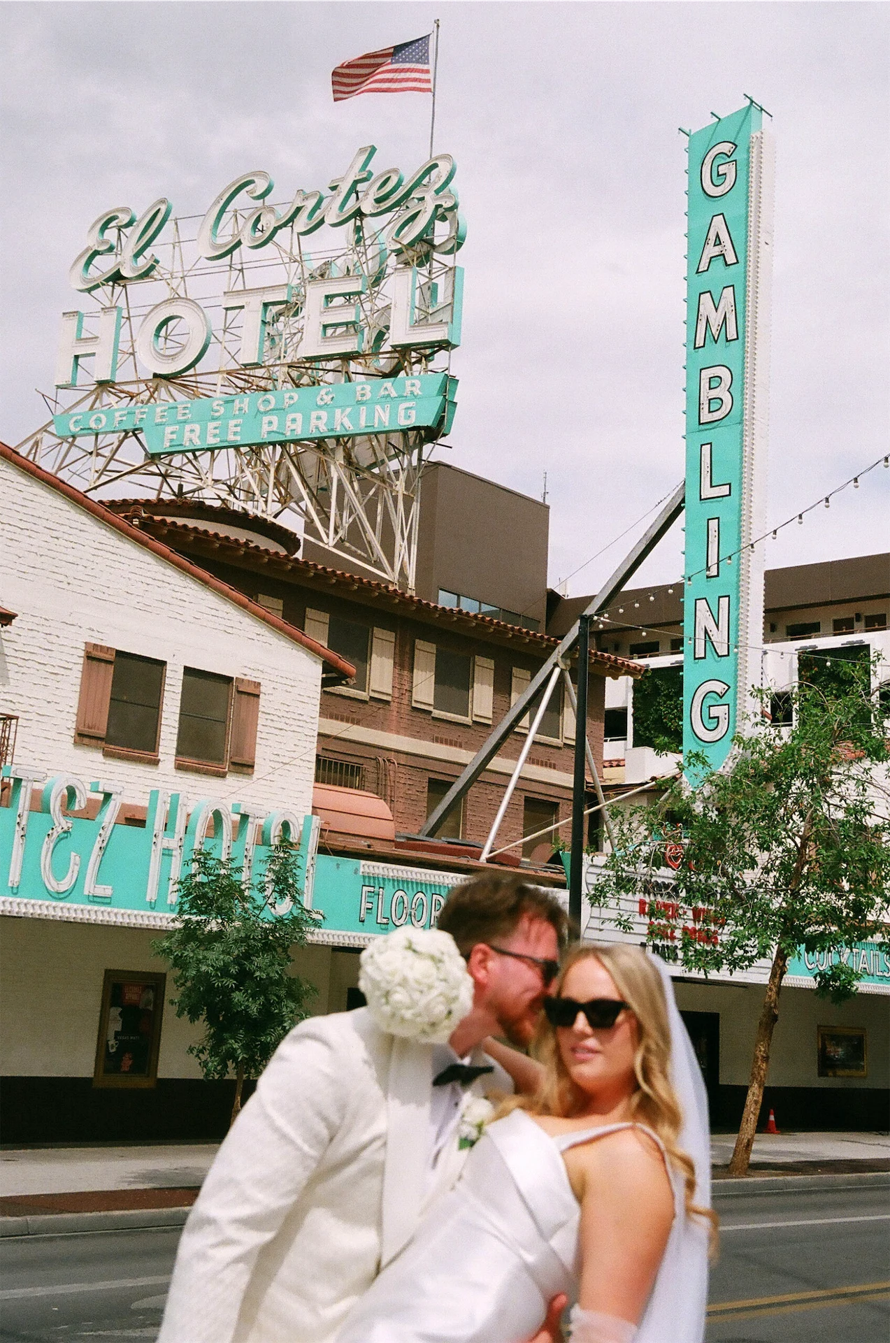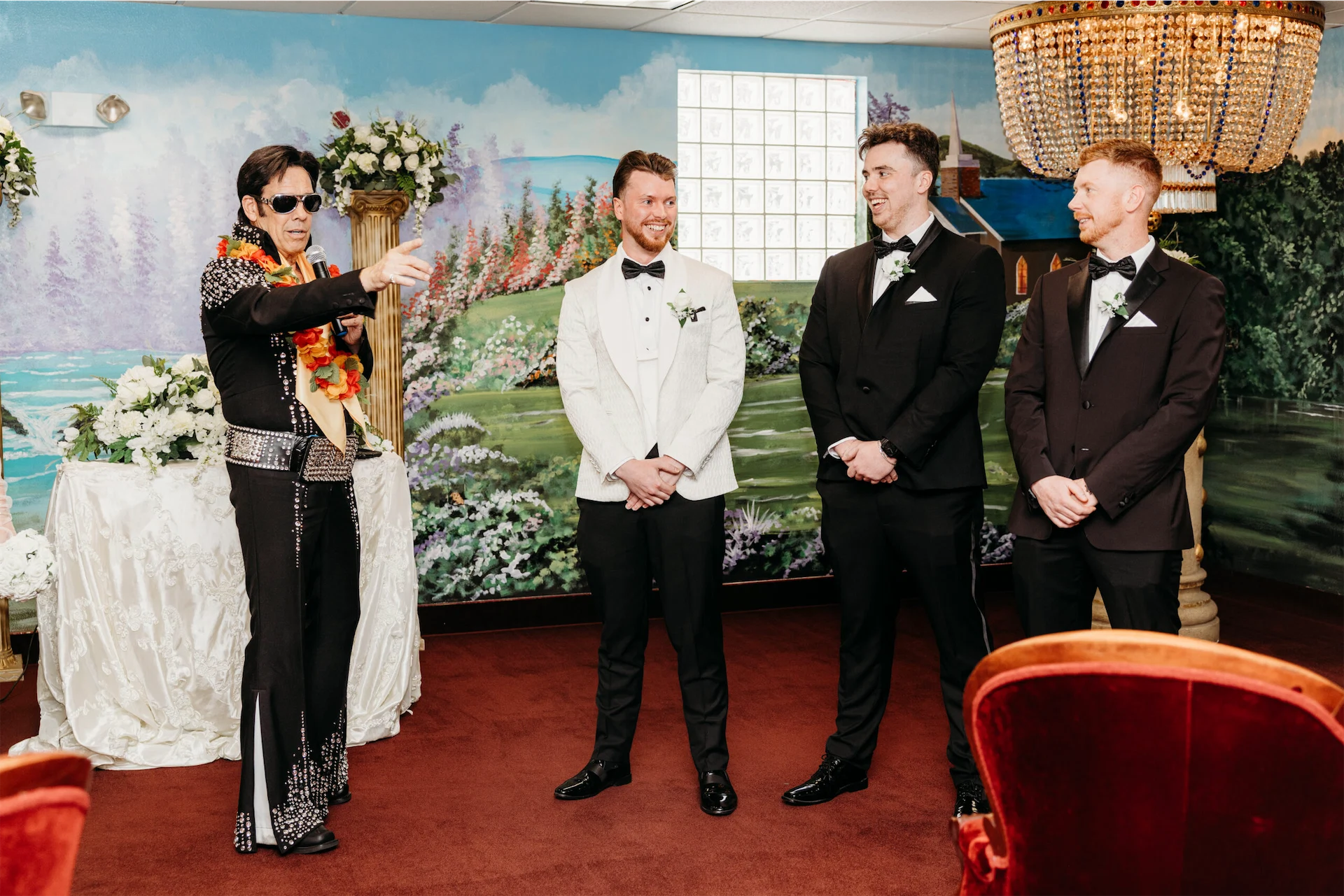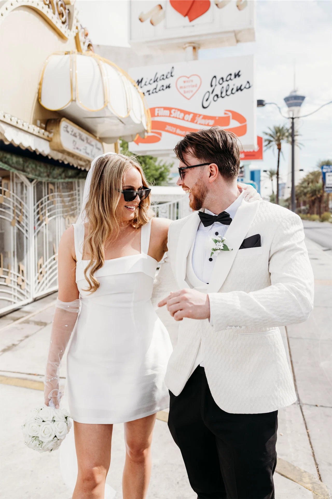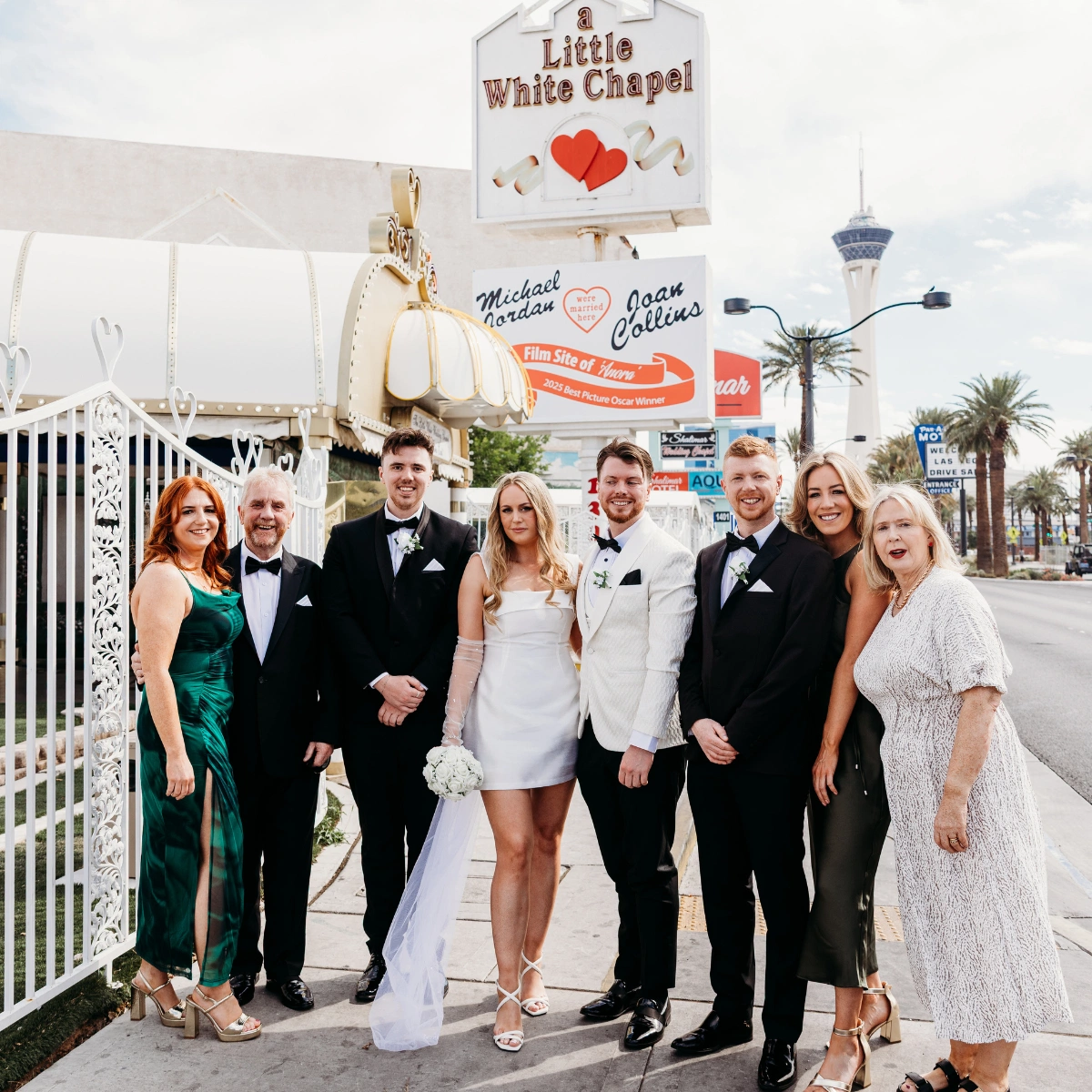 Zoë and Kevin tied the knot in true Las Vegas style at the iconic Little White Chapel, with none other than Elvis himself officiating the ceremony.
