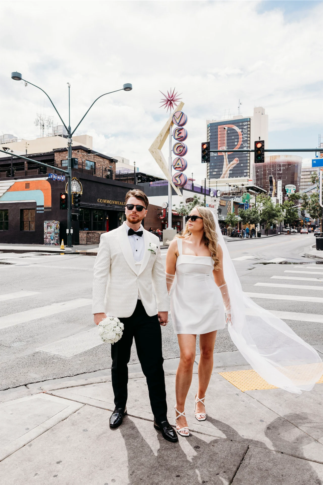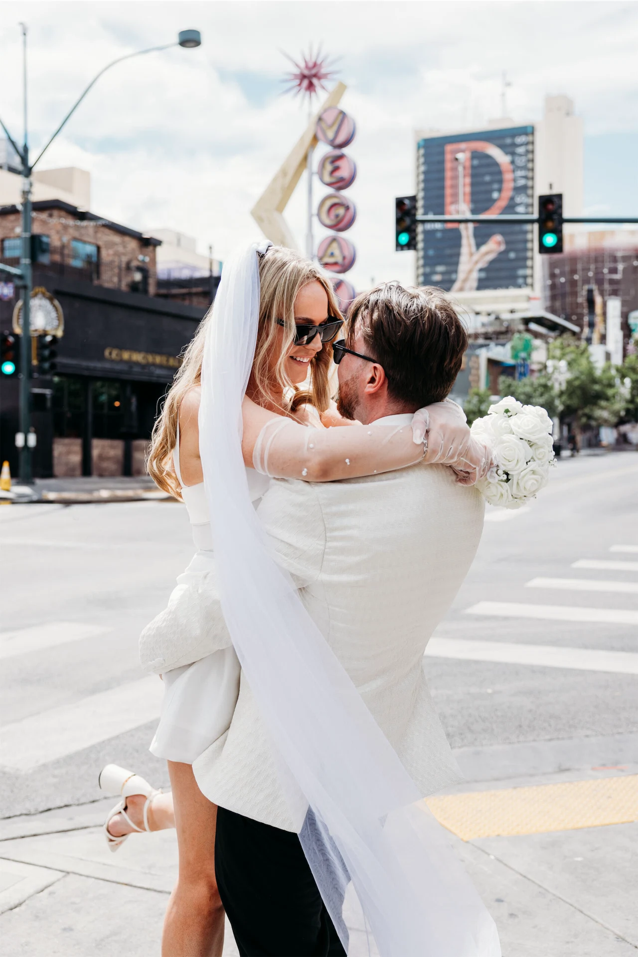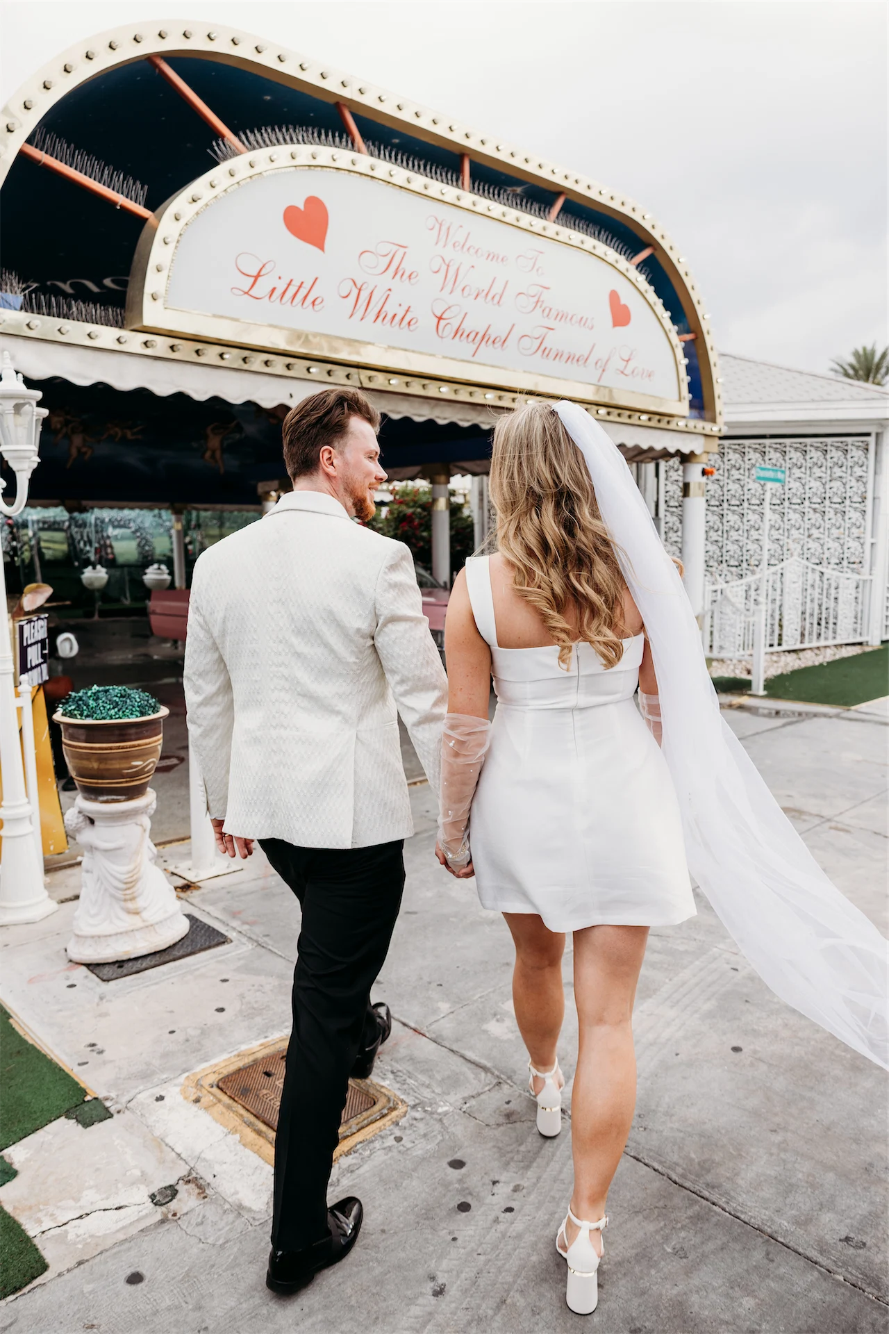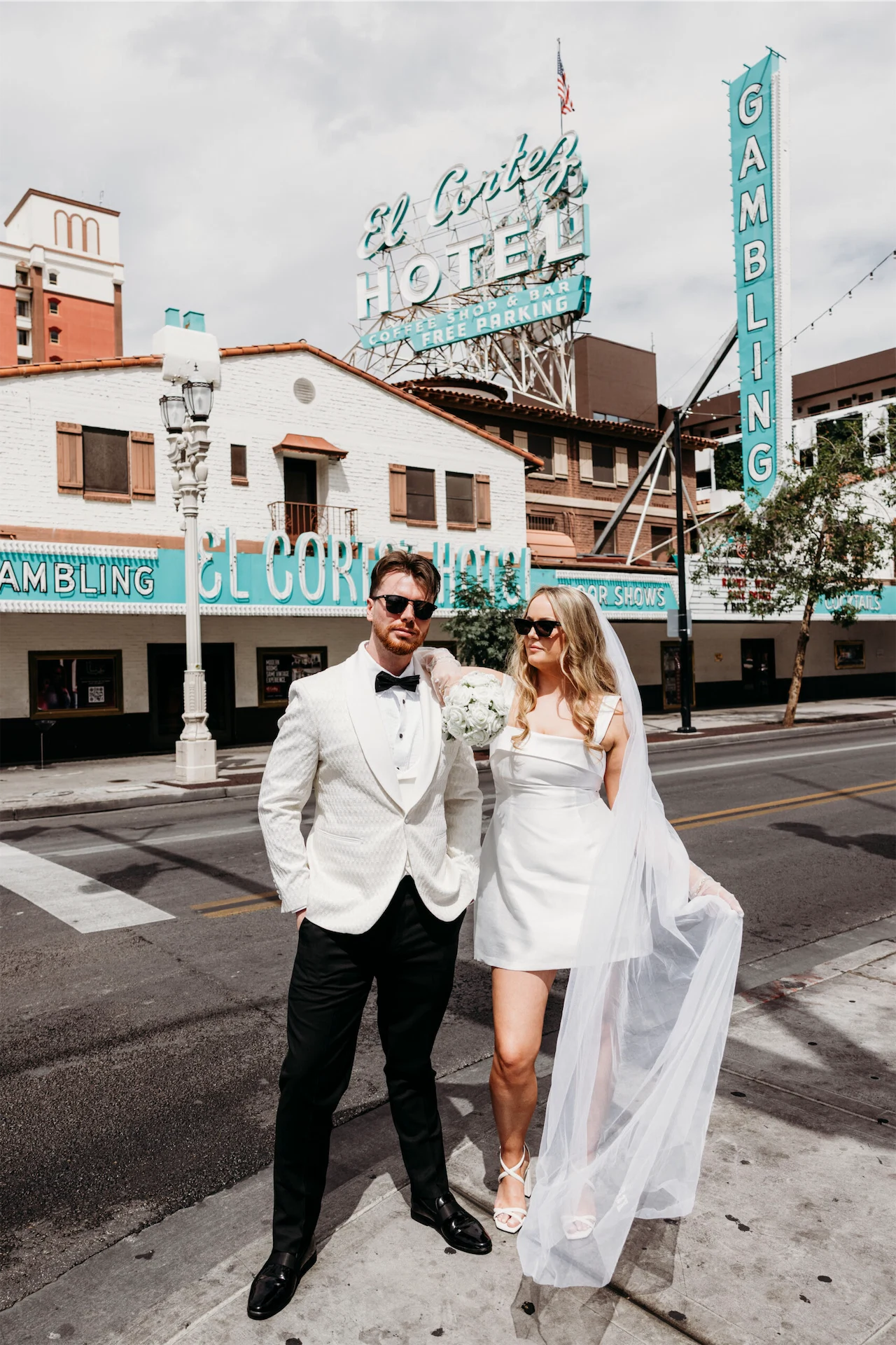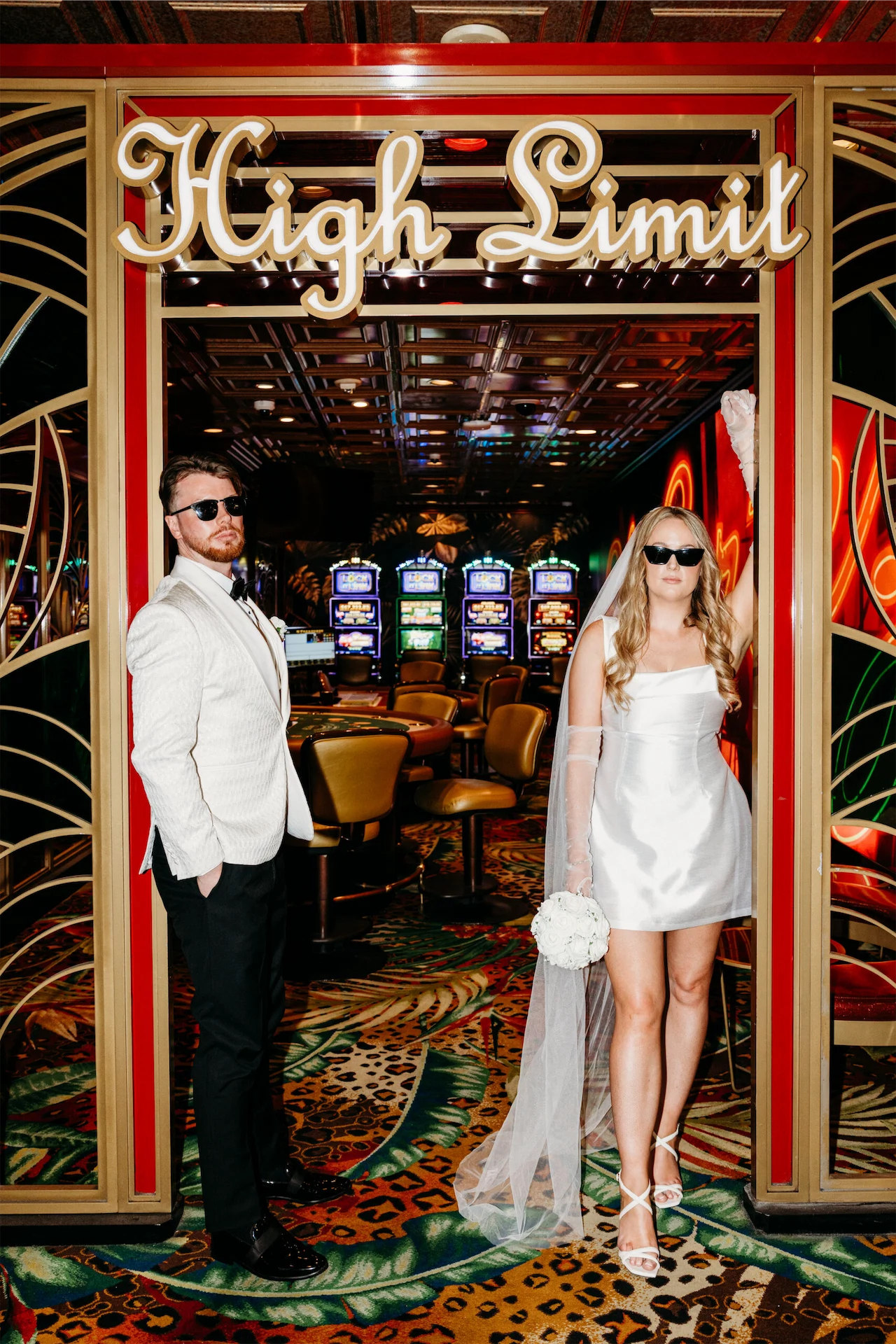 Zoë and Kevin tied the knot in true Las Vegas style at the iconic Little White Chapel, with none other than Elvis himself officiating the ceremony.