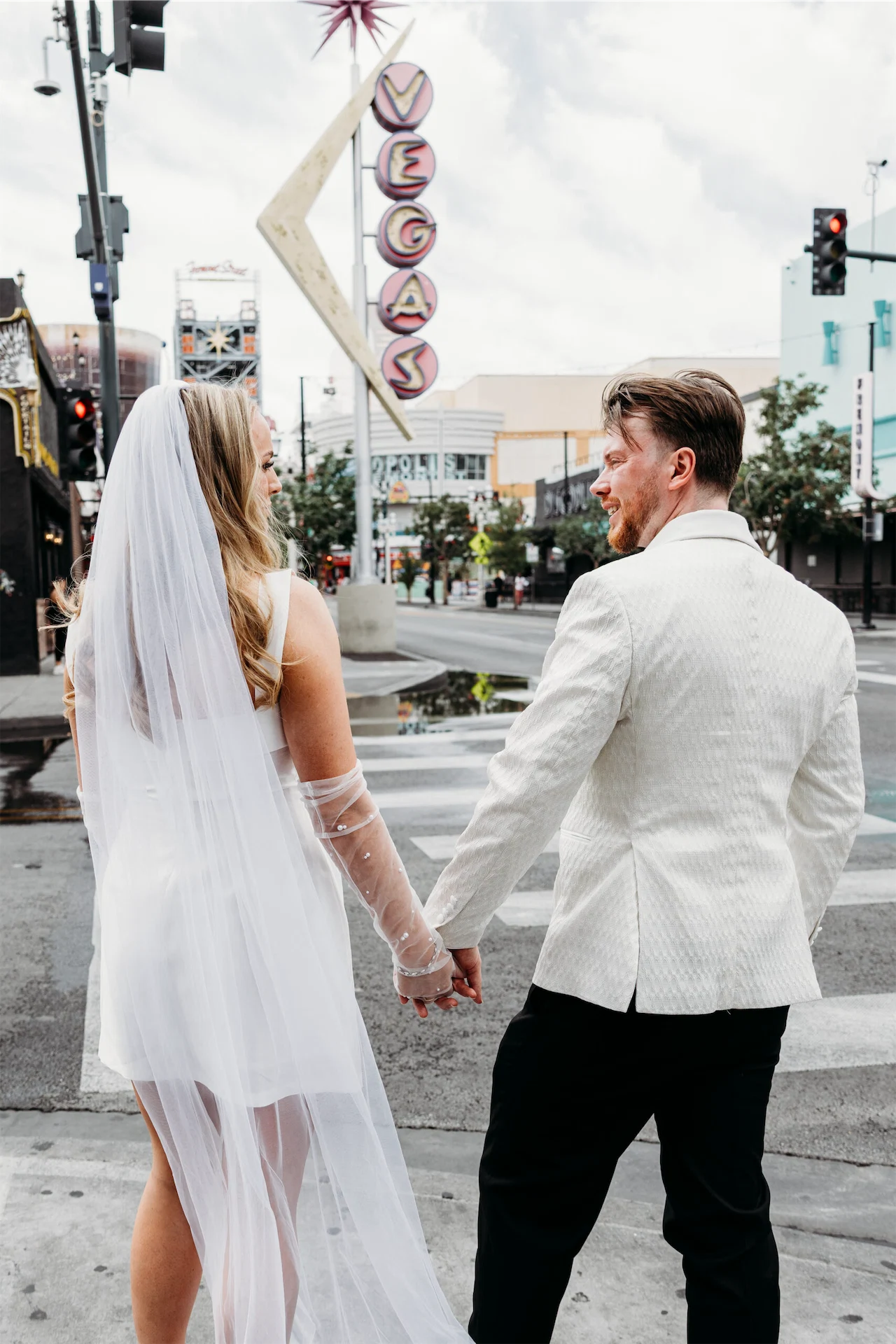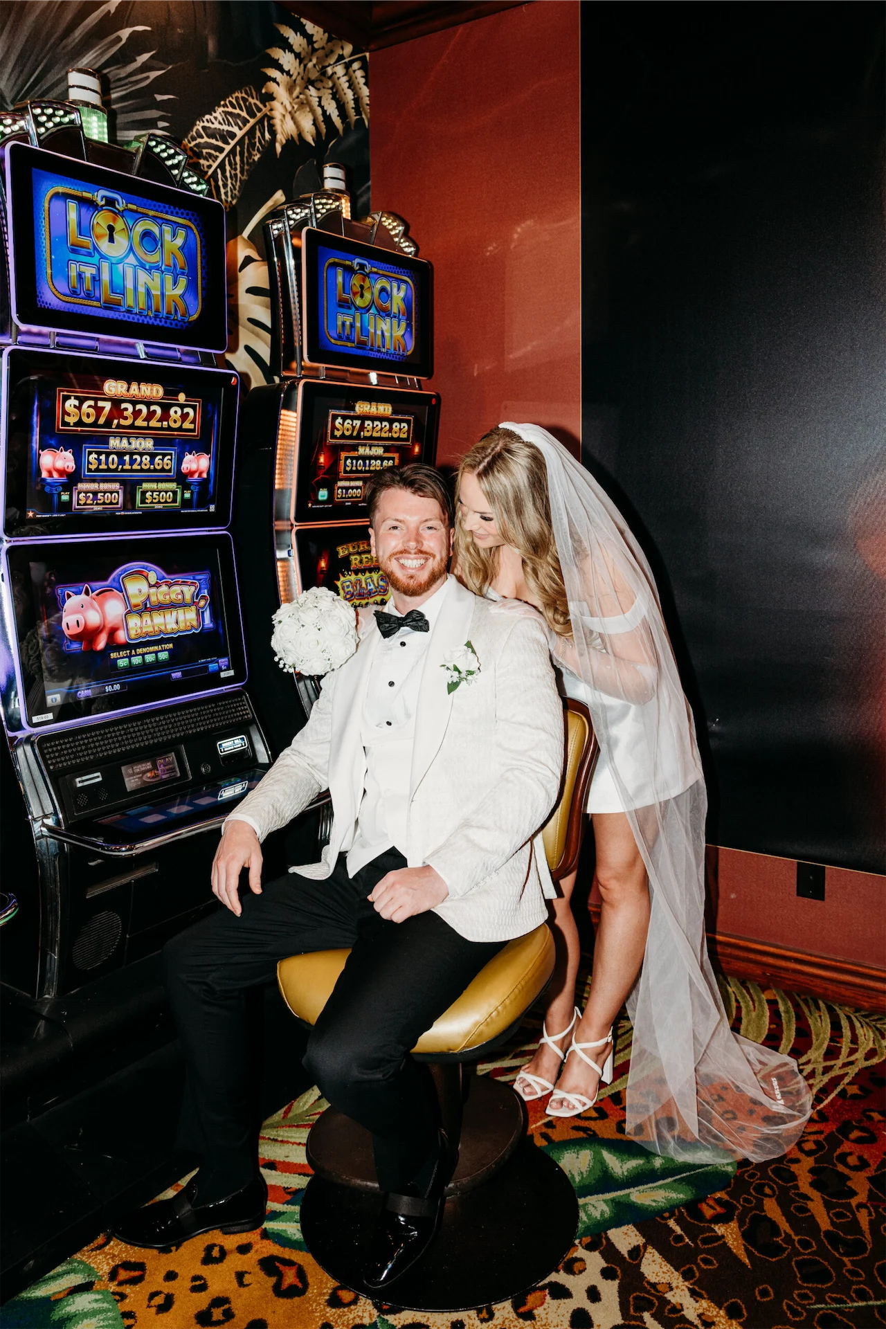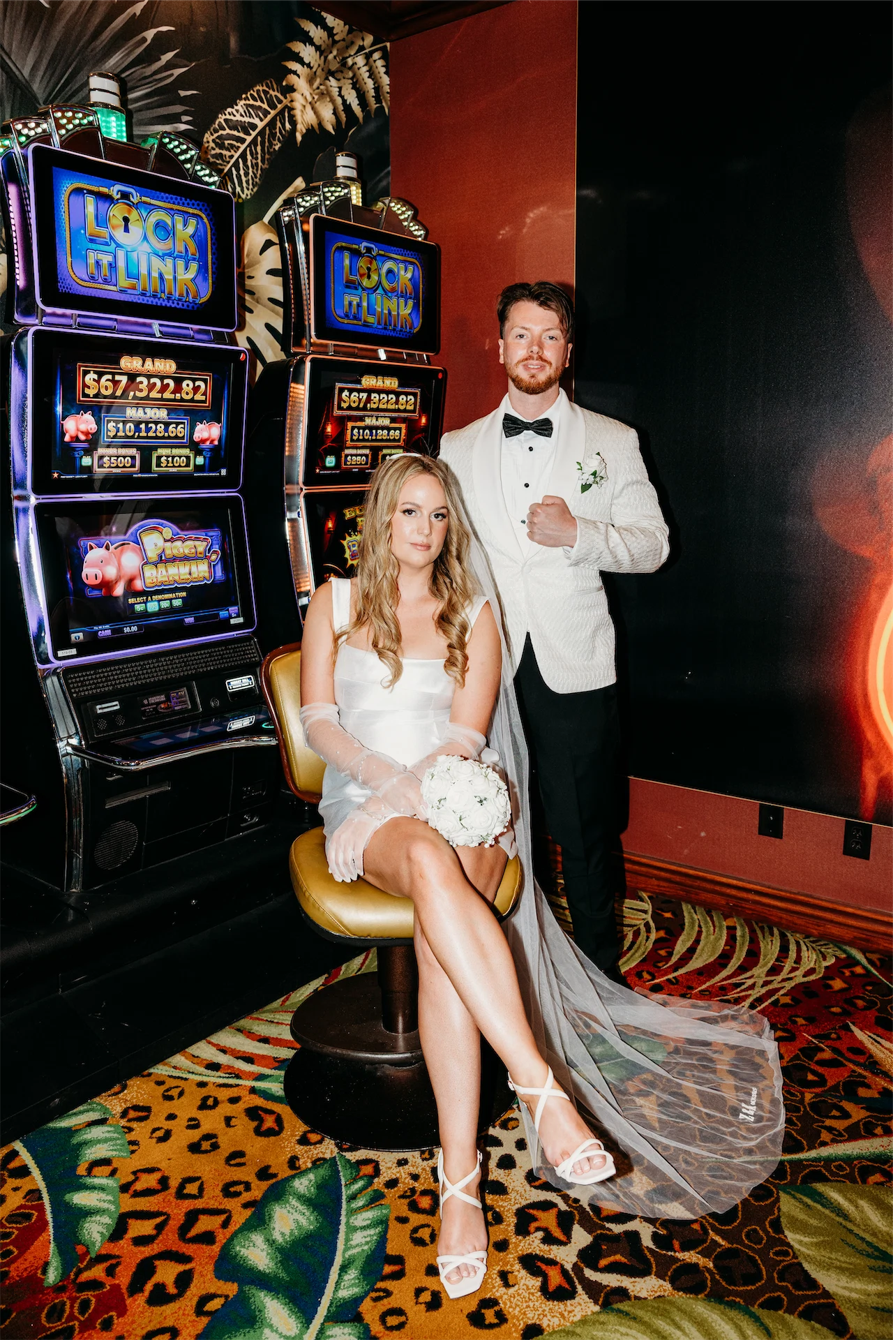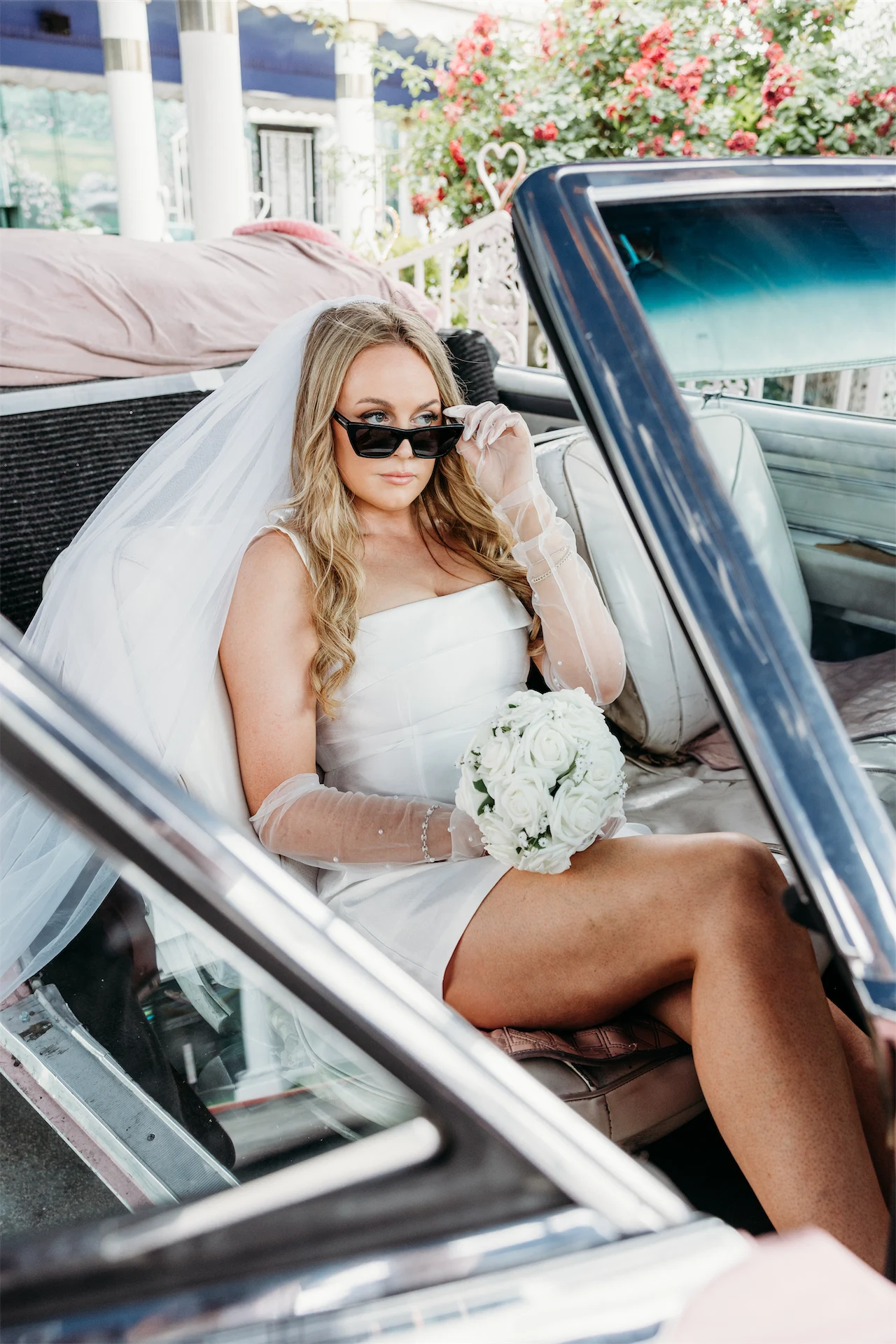 Zoë and Kevin tied the knot in true Las Vegas style at the iconic Little White Chapel, with none other than Elvis himself officiating the ceremony.