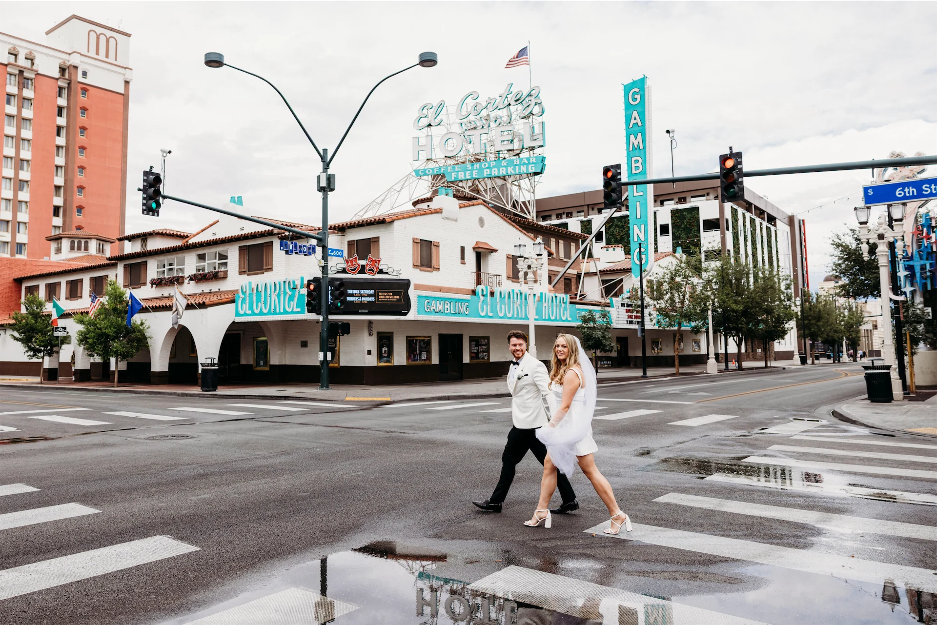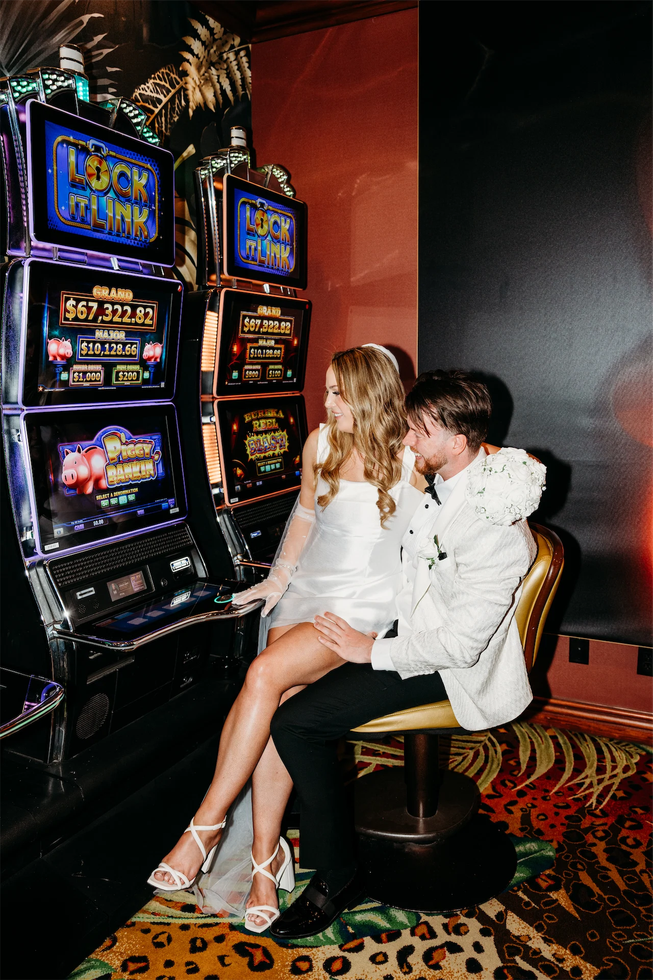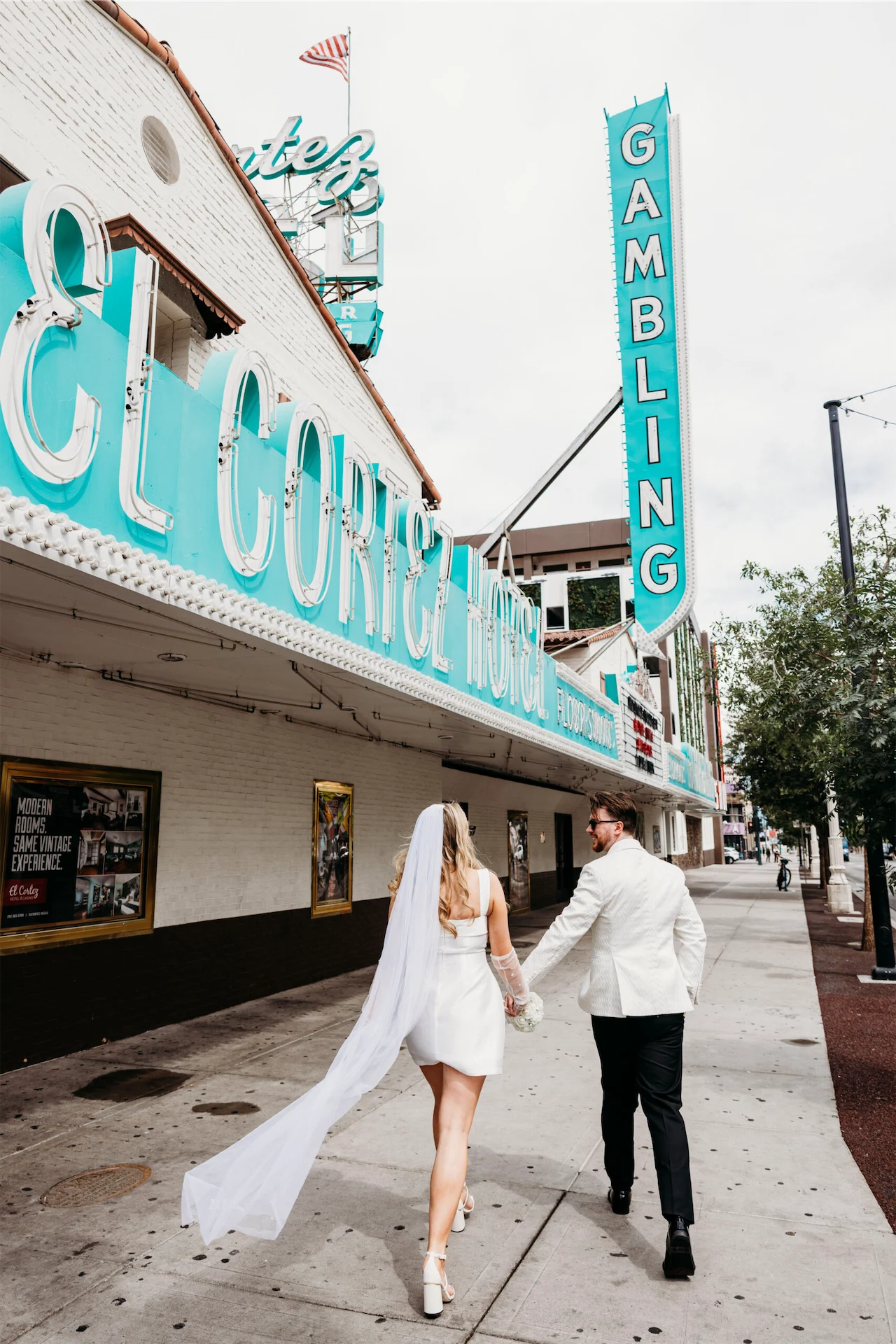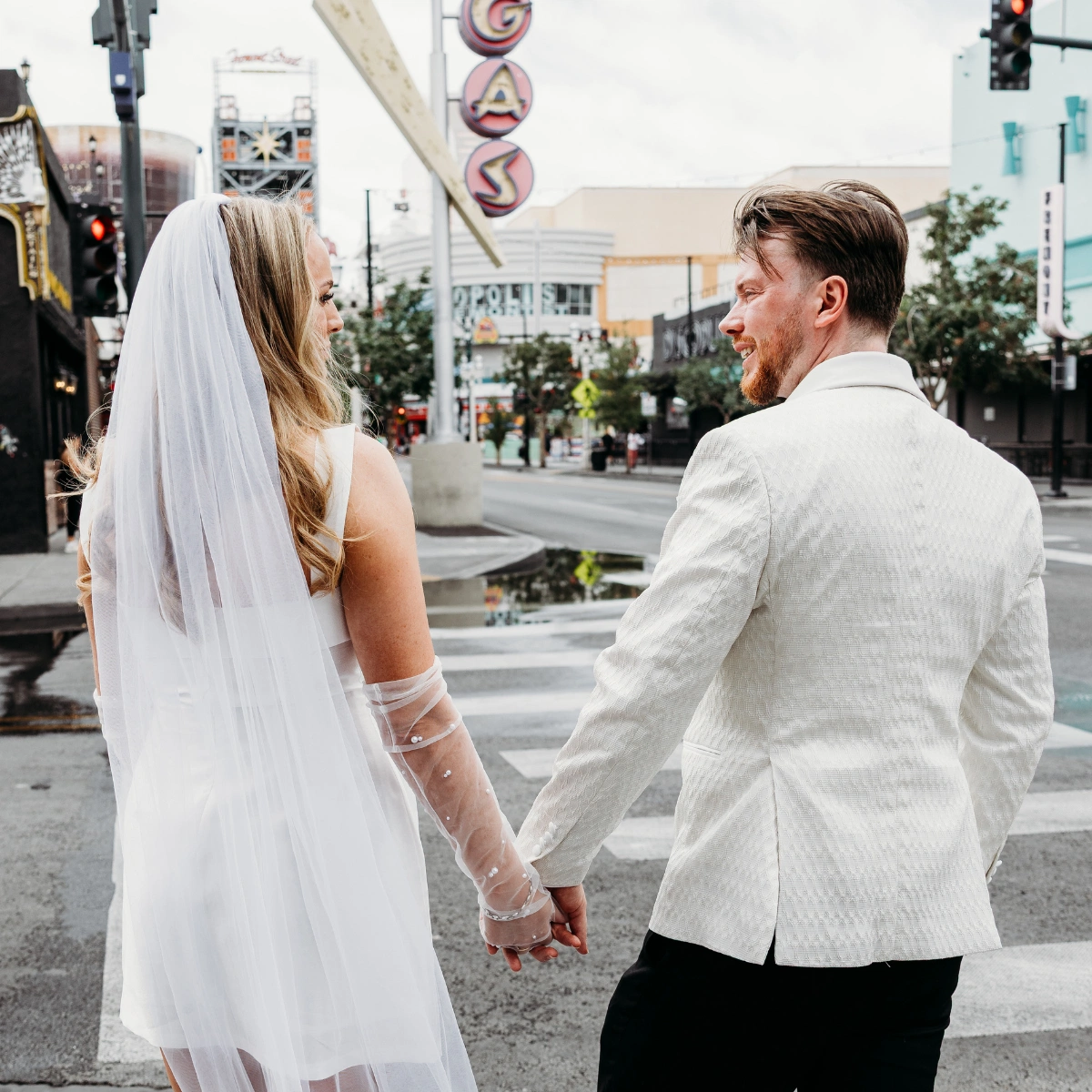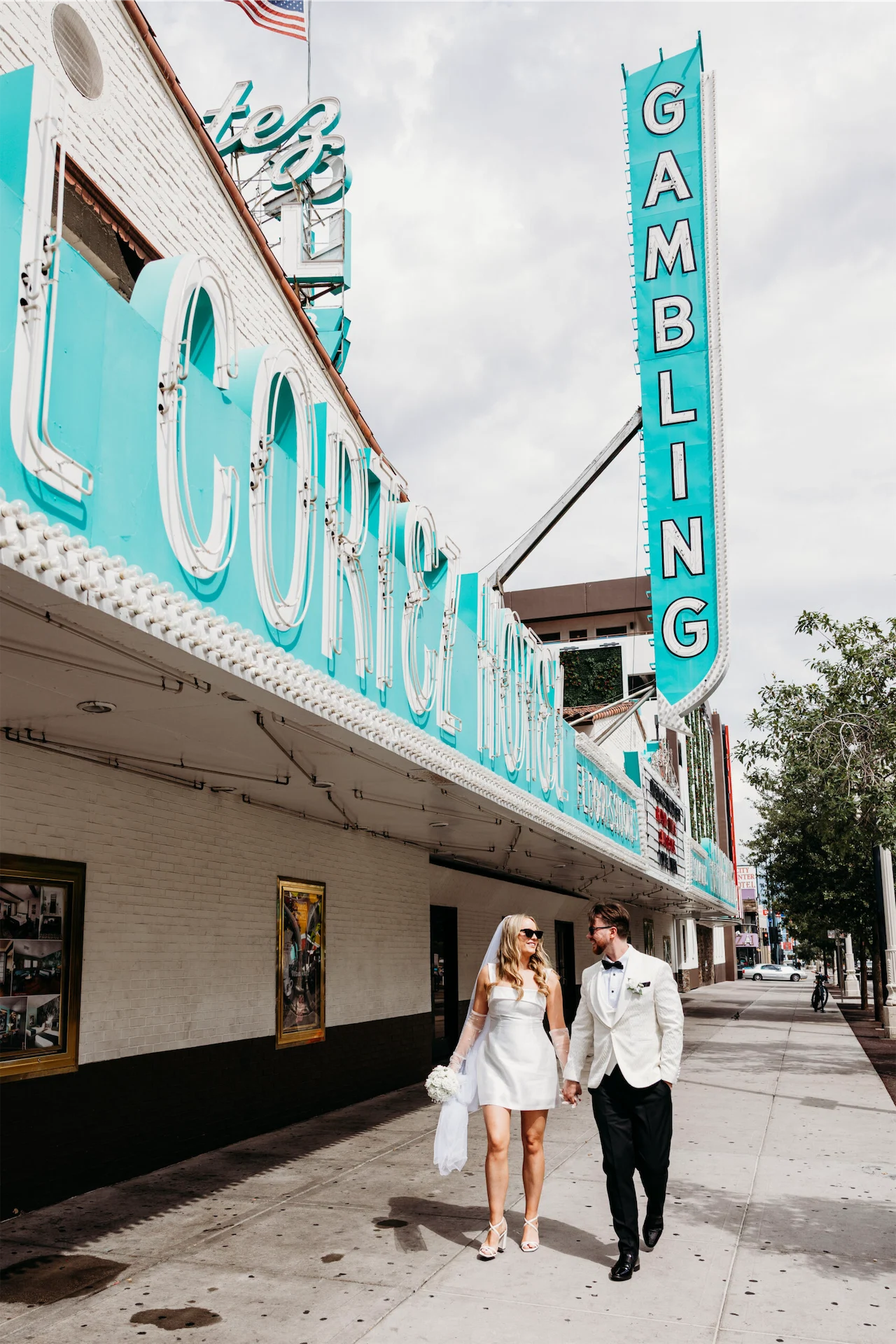 Zoë and Kevin tied the knot in true Las Vegas style at the iconic Little White Chapel, with none other than Elvis himself officiating the ceremony.