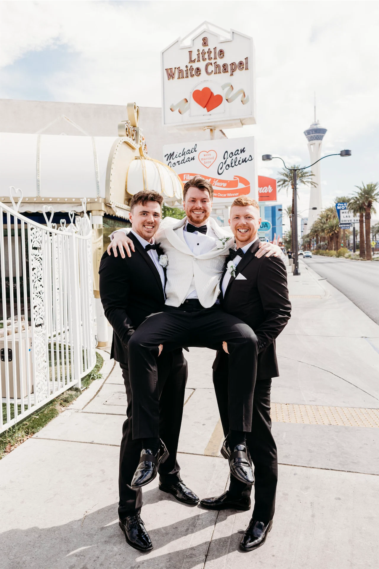On a previous trip to Vegas, Kevin had chosen a cream and black tuxedo. His groomsmen wore black tuxedos fitted and tailored by the fabulous Brendan and his team from Ready Tux.