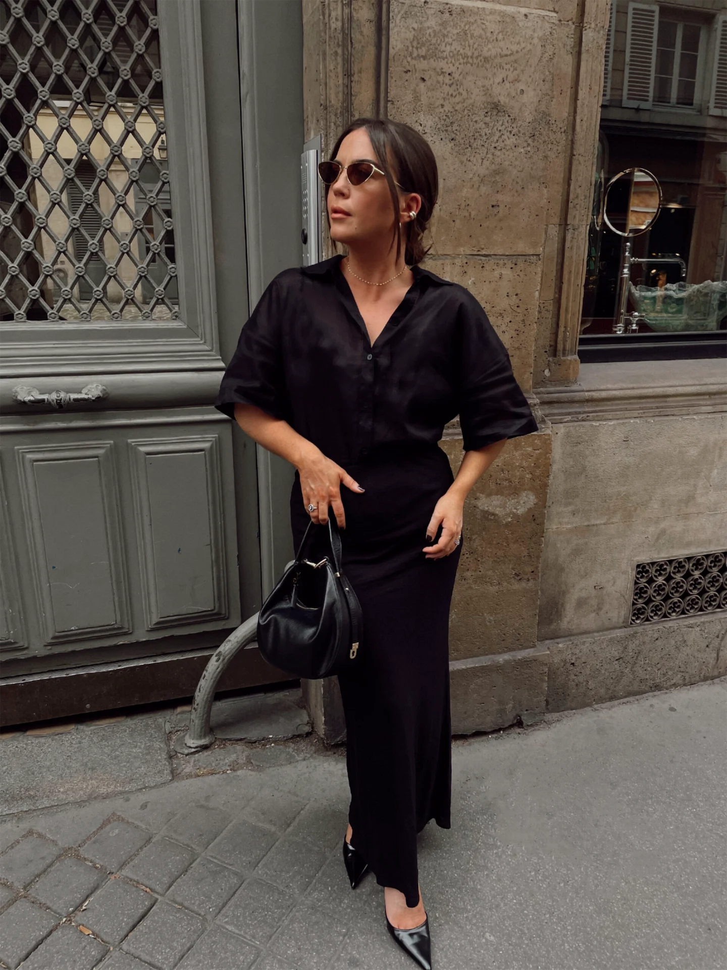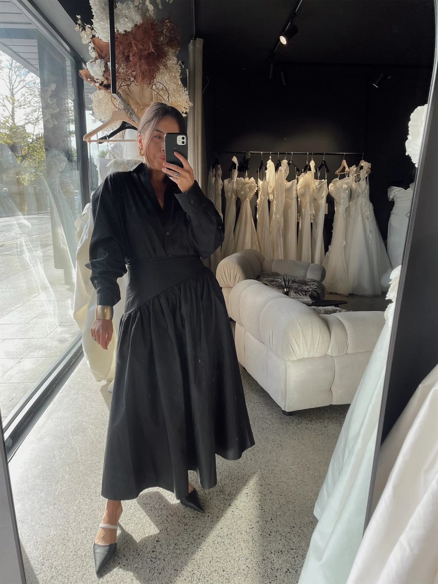 I usually see brides on a Tuesday for appointments at The One and could also be in town for meetings so again, I tend to wear something comfortable, light and easy to wear. Black to me is very chic and I feel my best wearing neutral tones. This maxi skirt is from H&M and I have paired it with this shirt from &Other Stories. My slip-on heels are Primark and my bag is from Somas, a gorgeous Irish brand.
