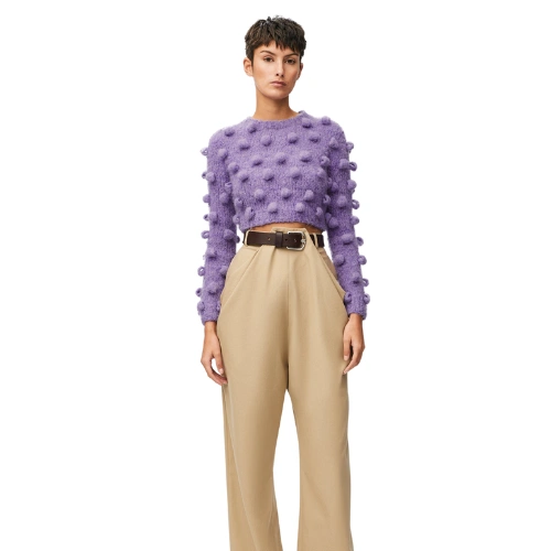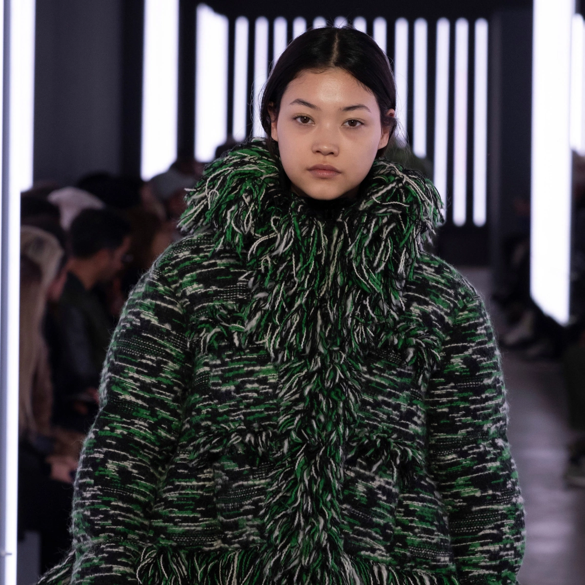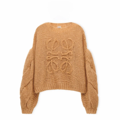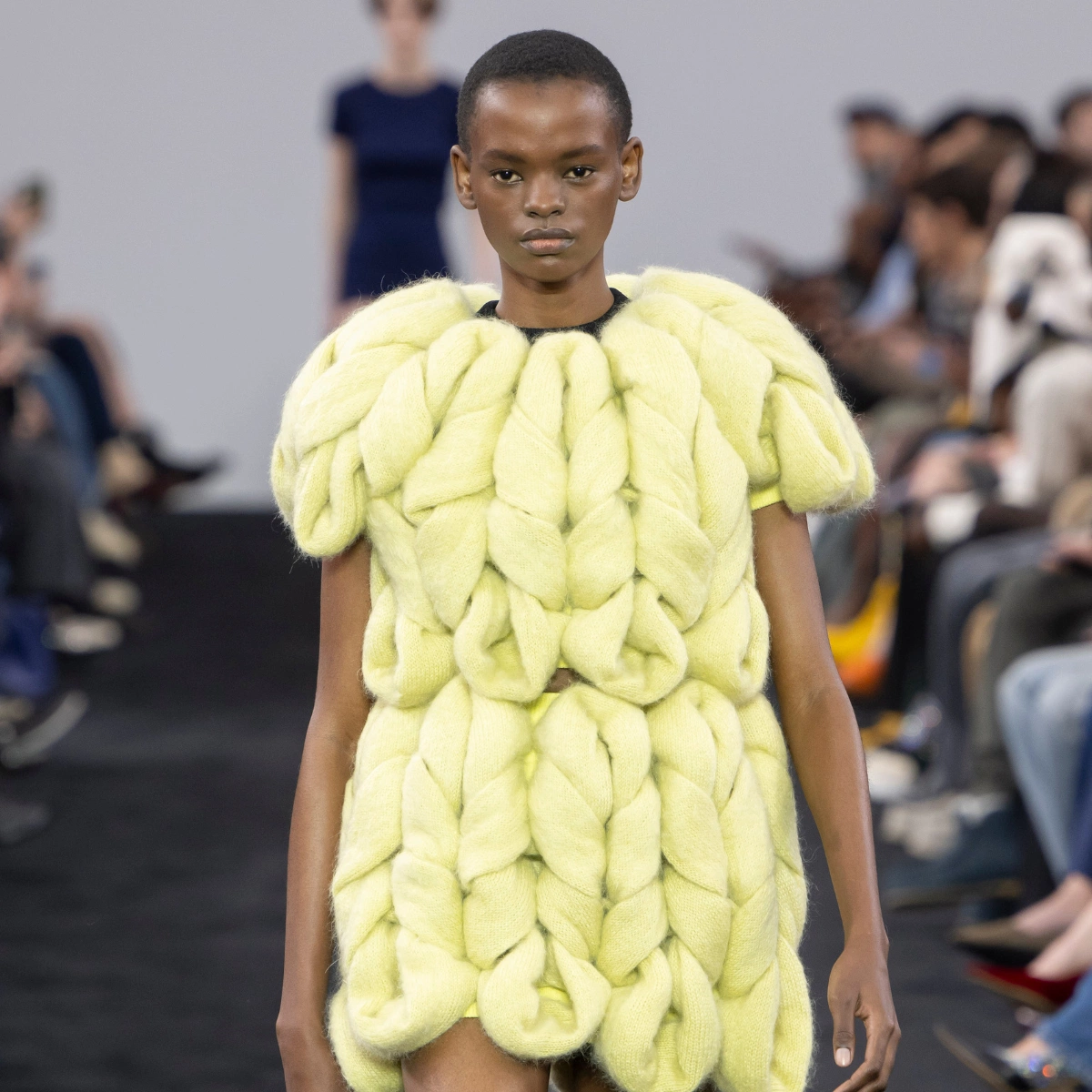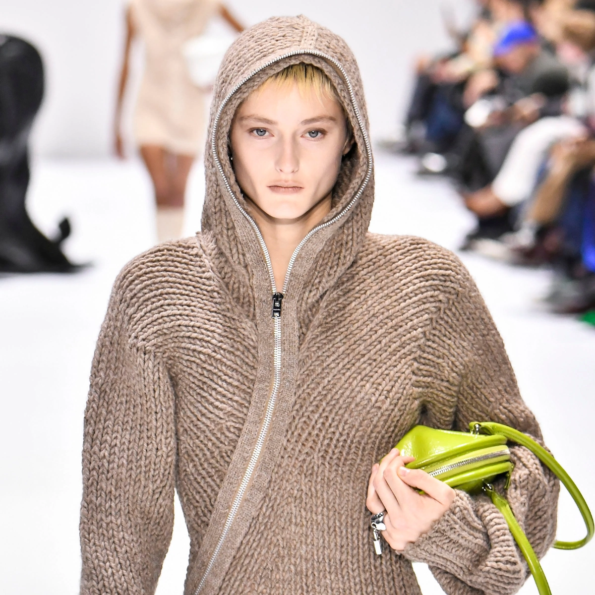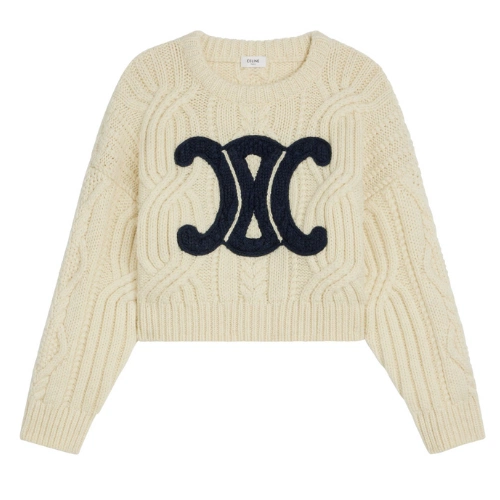 From Gucci’s iconic GG monogram in jacquard to Loewe’s mohair 3D anagram logo and Celine’s cropped Aran knit with the hand-embroidered Triomphe logo—best worn with a mini skirt, knee-high boots and large round sunglasses to evoke the sixties like the brand’s AW24 show in Paris.