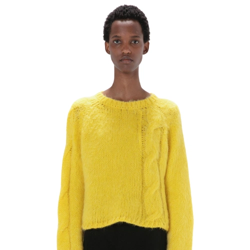 For a solid colour block alternative, a yellow cropped cable knit from JW Anderson will bring the sunshine on dark winter days
