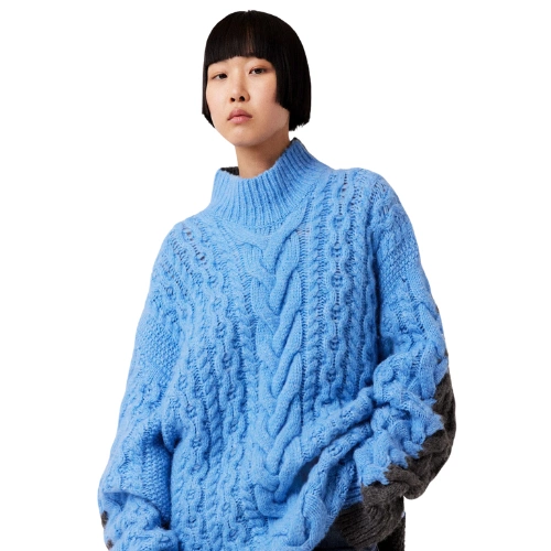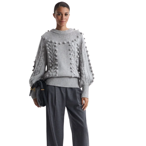 While colour and pattern are essential, texture is the element that truly defines statement knitwear. Runway collections from Stella McCartney, Sacai and Gabriela Hearst experimented with a variety of yarns and techniques to create pieces that are visually and tactically intriguing. Fluffy Mohair and shaggy alpaca blends bring a plush softness yet crafty aesthetic to oversized wraps and knitted coats, while innovative techniques like heavy embroidery, cable knitting, bobbles and fringe add a three-dimensional quality to sweaters and cardigans. These 3D knitted pieces from Loewe, Reiss, &Other Stories and Essential Antwerp will certainly help you stand out.