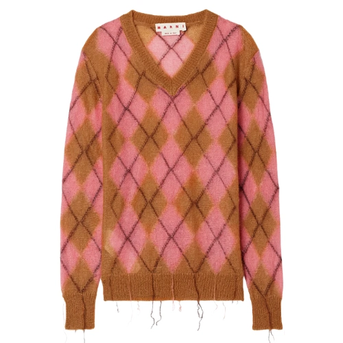 Some pieces even incorporate metallic threads or mixed fabrics, adding a luxe touch to the traditional knit. This Bottega Veneta chunky woven argyle-inspired gilet, a prep school logoed argyle jumper by Miu Miu and this fringed jacquard argyle mohair knit from Marni are perfect for those who appreciate a blend of heritage and innovation.