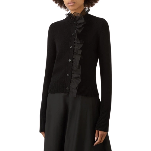 The sweet puff sleeve merino wool cardigan from &Other Stories works beautifully over a cami and silk slip skirt while the Cecilie Bahnson ruffled cardigan is an ideal transitional outerwear option for early autumn nights.