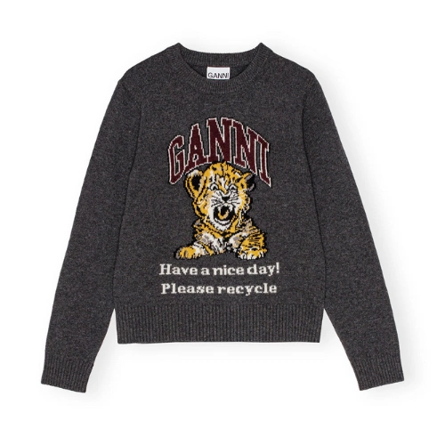 And, I love this youthful, super-fun tiger motif logo pullover by Ganni.