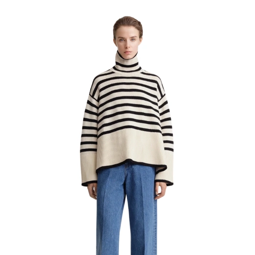Once again, oversized knitwear is taking centre stage for AW24. Chunky sweaters with exaggerated proportions dominate the runway collections, offering a cocoon of warmth while making a bold visual impact. At McQueen and JW Anderson, supersized knits play with proportions, creating a striking contrast in texture and shape, presenting knitwear that feels more like wearable art than a mere garment. The above piece from McQueen is a diffused version of the exaggerated runway showstopper while the oversized version of the traditional Breton striped knit from Tôteme is a modern autumnal take on French girl chic.