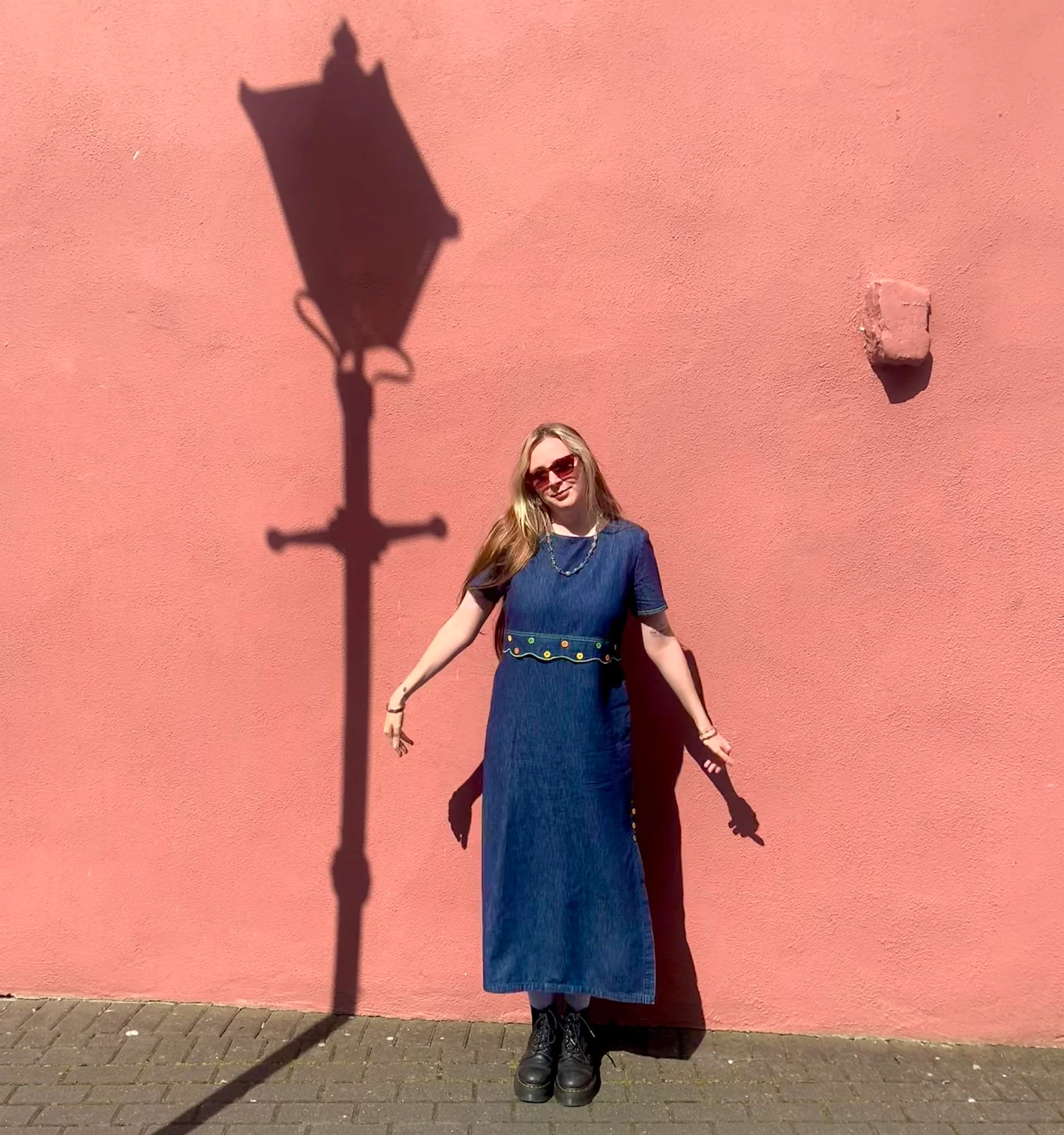 Do you know that feeling when you buy a new dress and feel like everything else you own pales in comparison? And that absolutely-chuffed-with-yourself expression that comes across your face when someone compliments it, and you can’t help but nod along in agreement — It’s so nice isn’t it! And it’s mine! I own it! — and wonder whether you can get away with wearing it to every function for the foreseeable? That was the case with this denim maxi dress from Spice Vintage. I went through a phase where I found myself making up a backstory for each vintage garment I purchased, — the oversized blazer was someone’s dad’s, but he was definitely a cool dad; my purple paisley Laura Ashley gúna belonged to a kind but ultimately reckless young lady, if the rip along the hem is anything to go by — and I imagine this denim frock was once owned by a laissez-faire secondary school art teacher. She doesn’t care much for the curriculum, but that woman could paint, damn it.