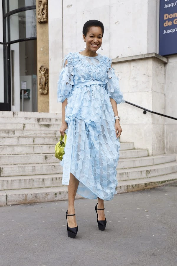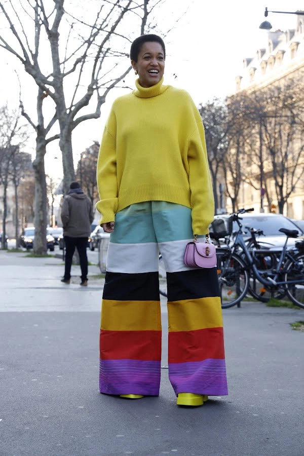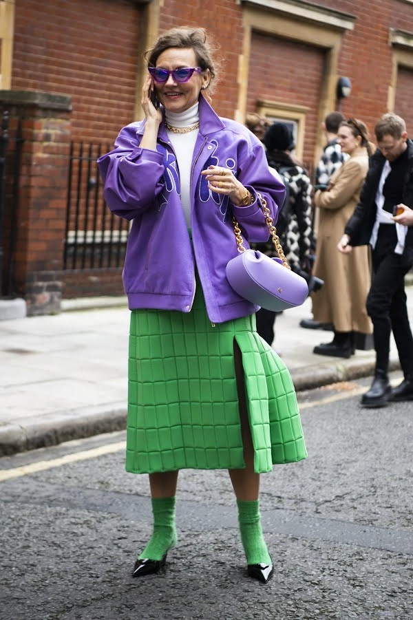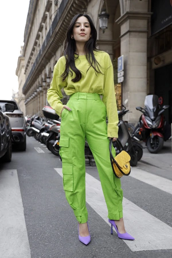 Along with hot pink, flashy fluorescents were a catwalk mainstay this season. Zesty tones of limes and lemons brightened the runways of Alexander Mcqueen, Valentino, and Gabriela Hearst. On the streets, the fashion set mixed varying tones in sleek separates for a modern way of wearing the highlighter hues. Shades of grey will help temper and add a chic feel to the shocking shades.