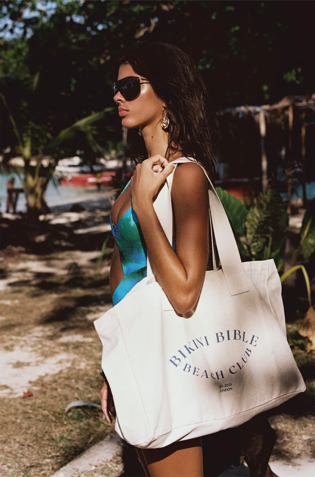 I always keep my reusable metal straws in the house so I use them instead of single-use plastic straws. These are so handy because they wash so easily. I sometimes make a smoothie and go on a walk with my glass smoothie cup and metal straw which is a much more sustainable (and cheaper) way of going outside to get some fresh air. For those who are trying to be more sustainable this summer, I would also suggest trying to opt for less single-use plastic when shopping and bring your own bags with you when you go shopping. For example, I am never without my Bikini Bible Beach Club Tote that holds literally everything!