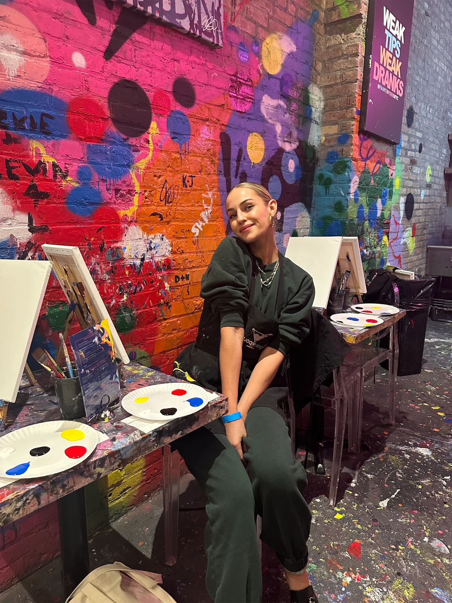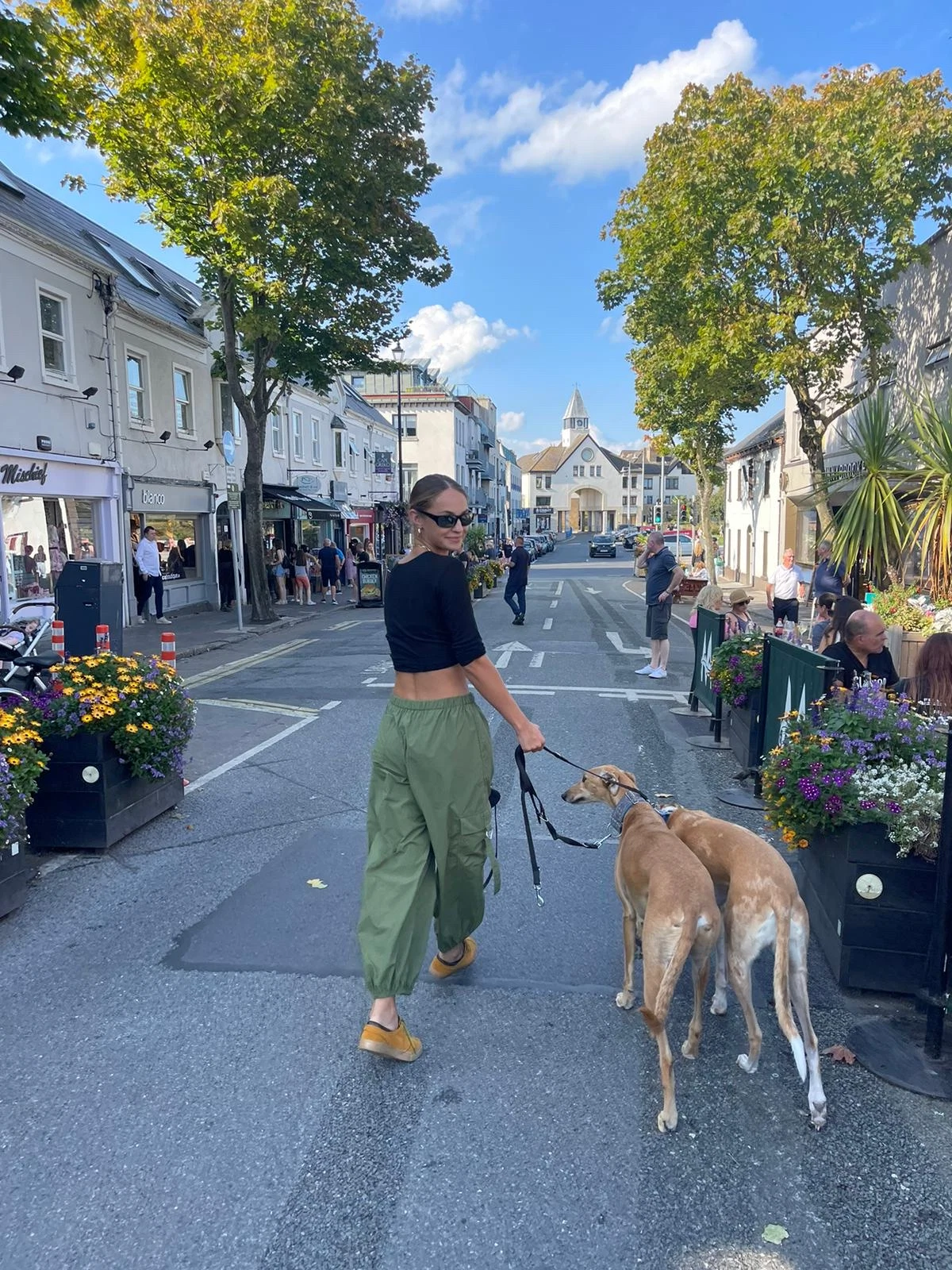Saturday, I went out with a friend to a paint and pour class. We had spent the day with the dogs and then did some shopping beforehand so we kept it casual and comfy. This green tracksuit is a staple in my wardrobe, also from Brandy Melville. I picked it up in New York and wear it all of the time. It’s super heavy and warm and, coming into winter, I know it will keep me super cosy. I paired it with gold jewellery and vintage Gucci slides.
