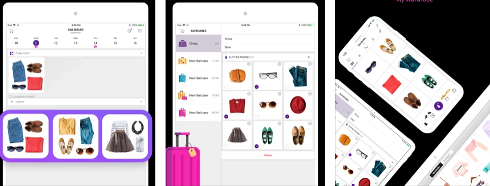 Arrange your wardrobe easily, organise by category and outfit, add outfits to your calendar to take the stress out of getting dressed every day and prepare your suitcase in advance of your trip.