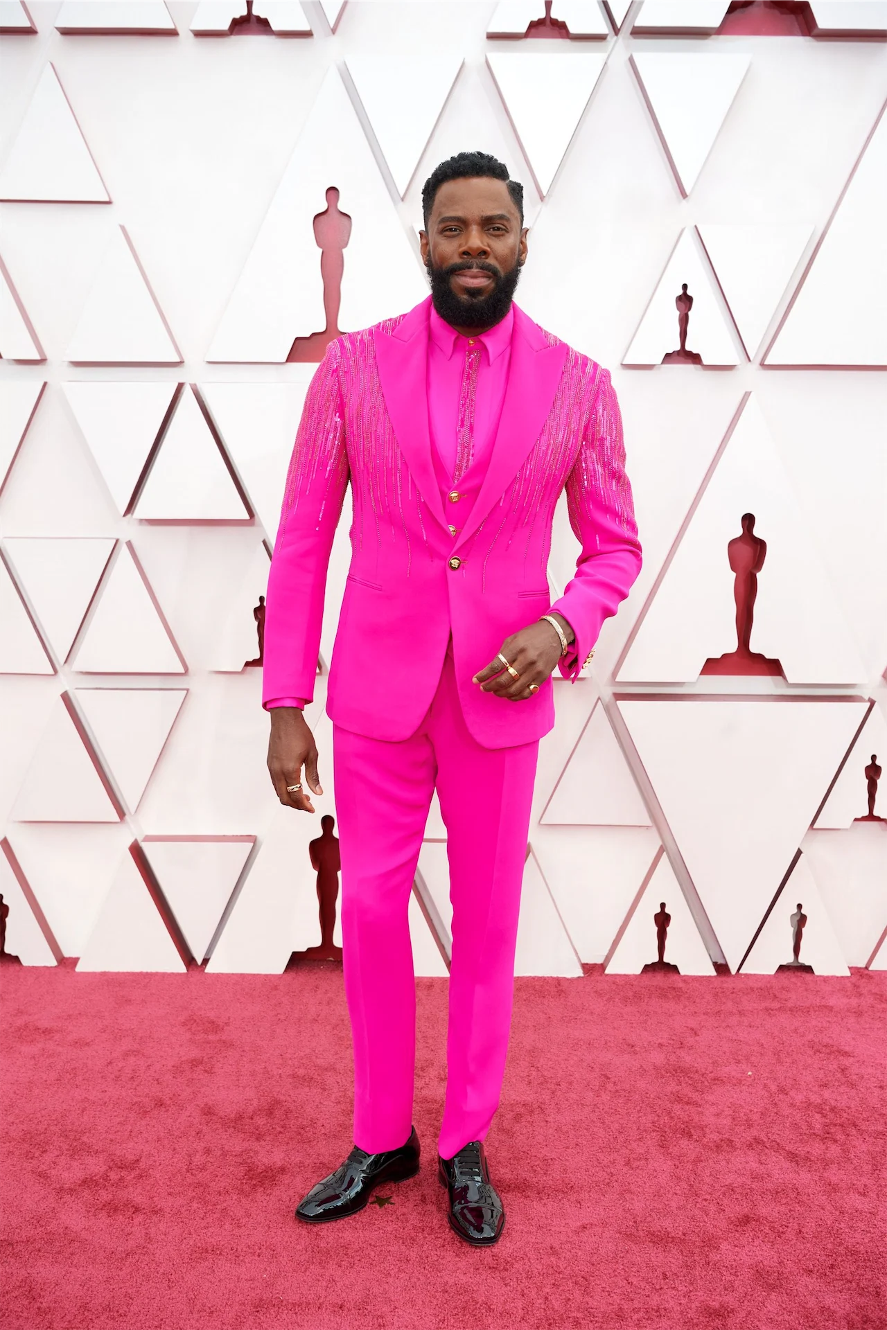 This year, it’s possible that the men beat everyone for best dressed. LaKeith Stanfield wore perfection in a feminine Saint Laurent suit, Colman Domingo in hot pink Atelier Versace lit up social media, as did Paul Raci’s black fingernails and Daniel Kaluuya’s Cartier necklace.