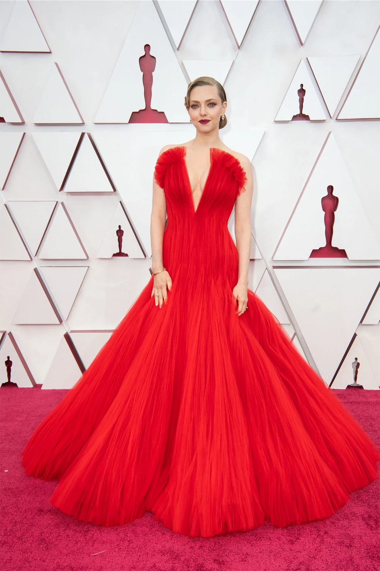 Zendaya wore electric yellow Cher-inspired Valentino, complete with flowing hair and Laura Dern wore Bjork-esque feathers. Margot Robbie wore Chanel as per with some new bangs, Carey Mulligan’s Valentino deserved its own Oscar, Amanda Seyfried wore a bubble of Armani Privé red tulle and I think we can all agree that Regina King.