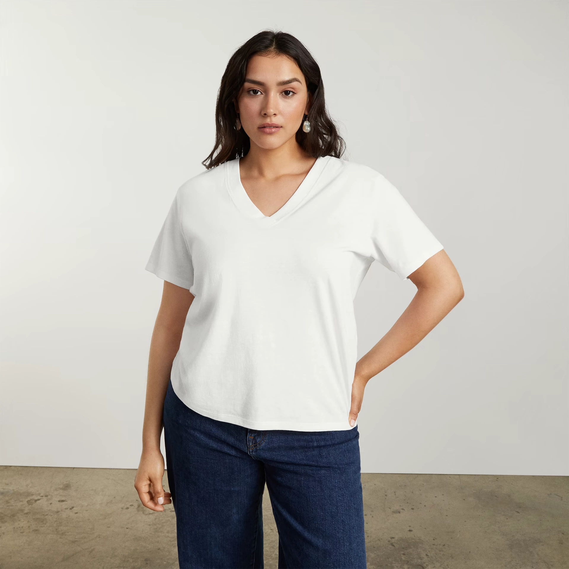 Appropriate for the office, brunch with the gals or just lazing around the house on a Sunday afternoon, a plain white tee is good in every scenario.