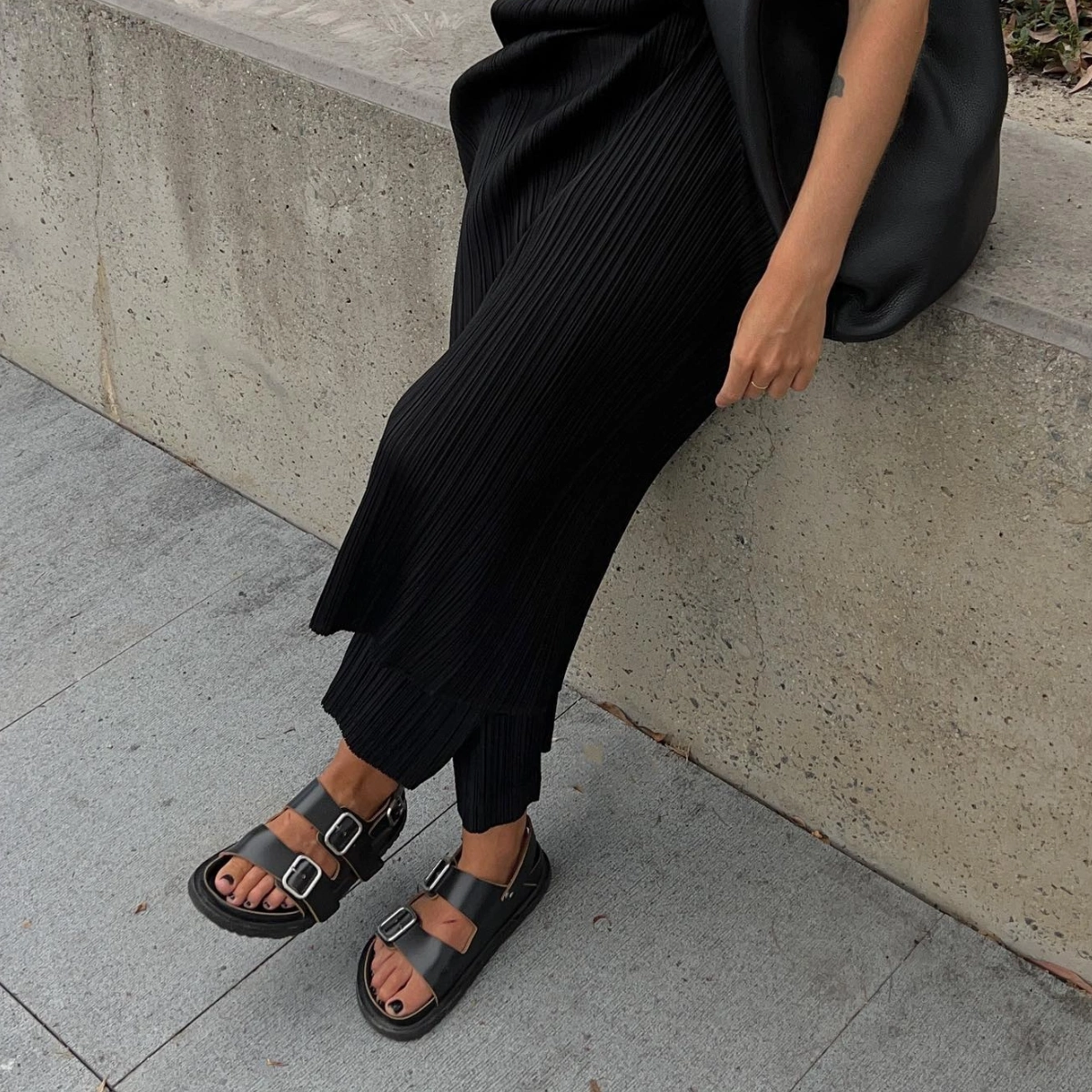 Chunky, quilted, sometimes velcro; the dad sandal is the very shoe your own father would pack for family holidays abroad. Don’t let that put you off though. A favourite amongst the Instagram style set, they’re the perfect pairing for everything from shorts and a tee to dressier summer ensembles alike.