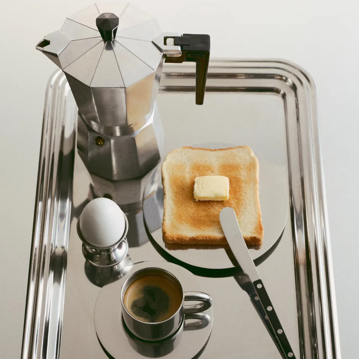 All things chrome interiors are taking over my feeds at the moment. I’ve just purchased this €15 JYSK lamp to scratch the silver itch, but now I have the entire H&M Home stainless steel collection taking over all of my tabs, particularly this cup and saucer. At this rate, my home will look like a spaceship by the end of the month.