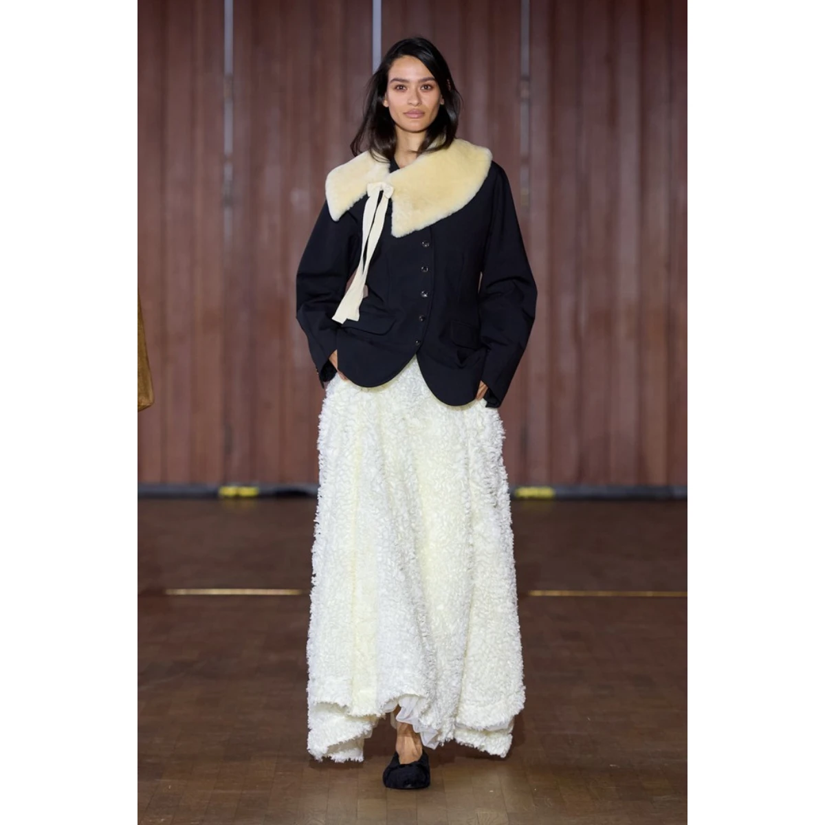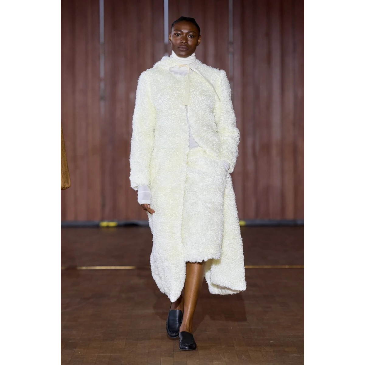 Faux fur set the tone immediately, reflected on the front-rowers too, becoming less of a trend and more of a necessity to protect against the bitter wind chill. On the catwalks, the texture topper came cropped at Herskind, decked out in cream at MKDT and coated in shawls at The Garment.