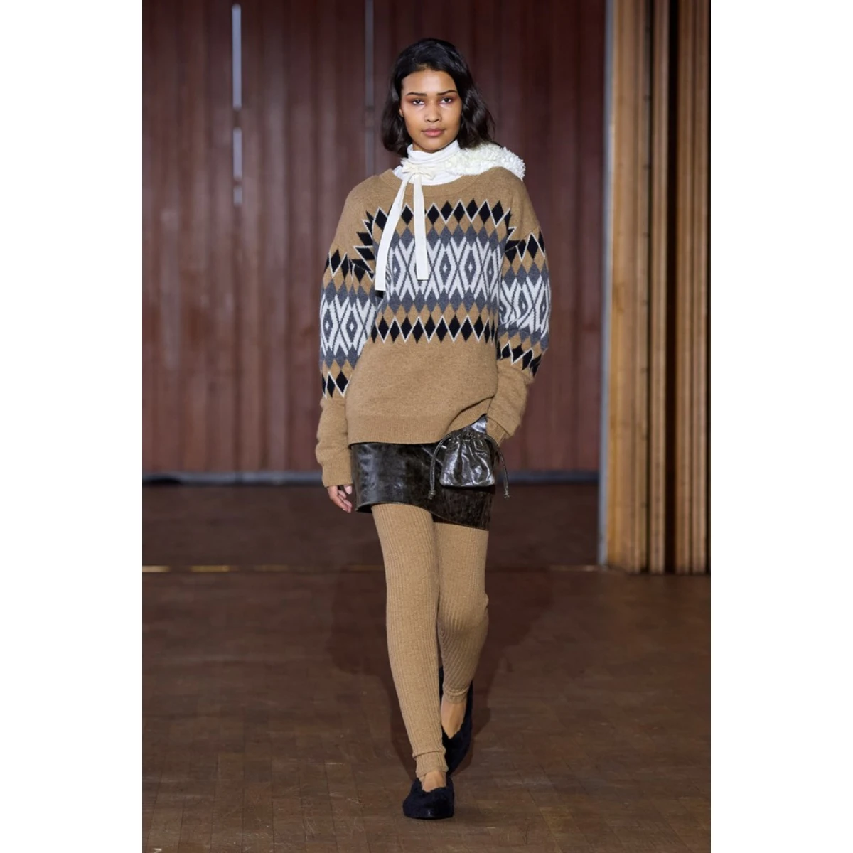 Want to inject a little personality into your knit for winter? Look no further than the fair-isle jumper. Skall did it best with an outfit ripe for recreating – teaming it with a frill-collar blouse, an oversized check coat and a wide-leg denim. Paolina Russo gave a masterclass in layering knitwear, cropping it, and teaming it with a pink midi dress. While MUNTHE teamed monogrammed fair isle with sheer skirts.