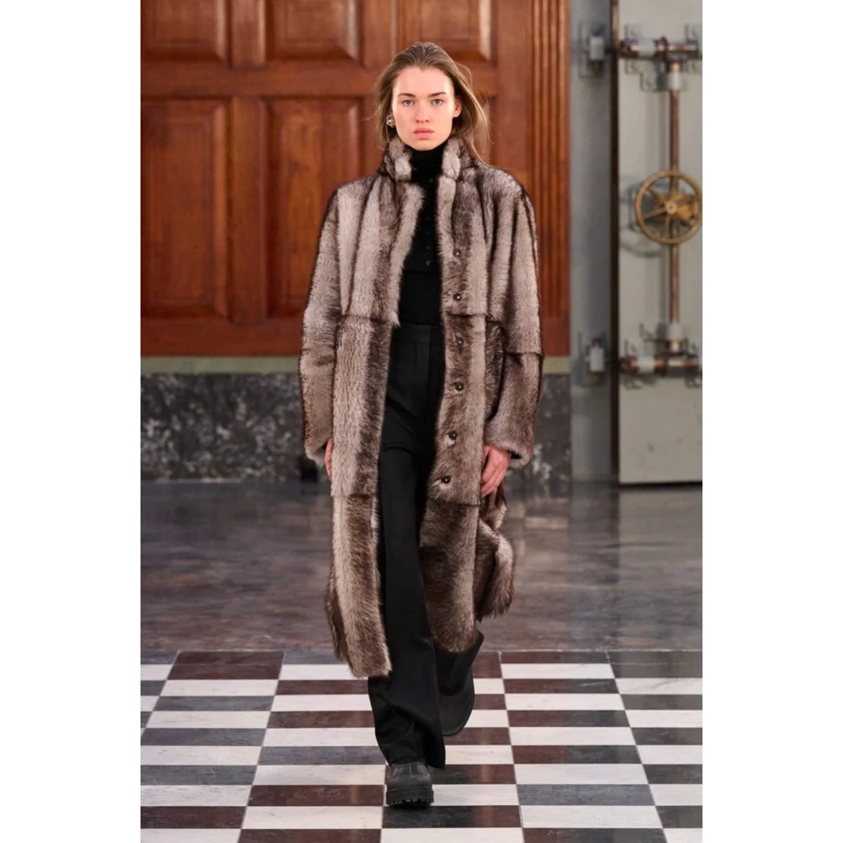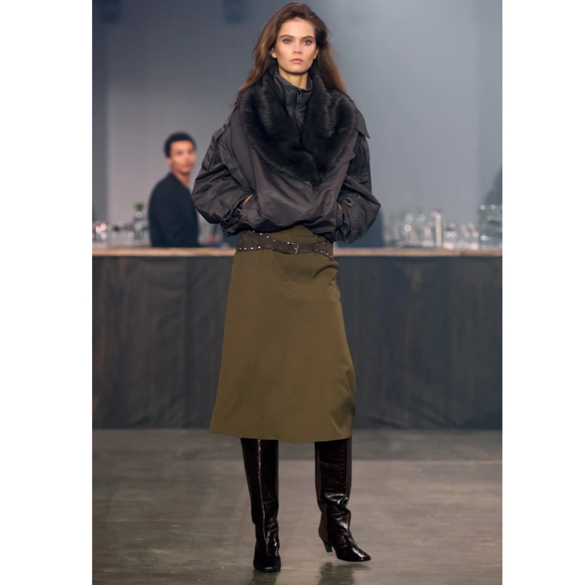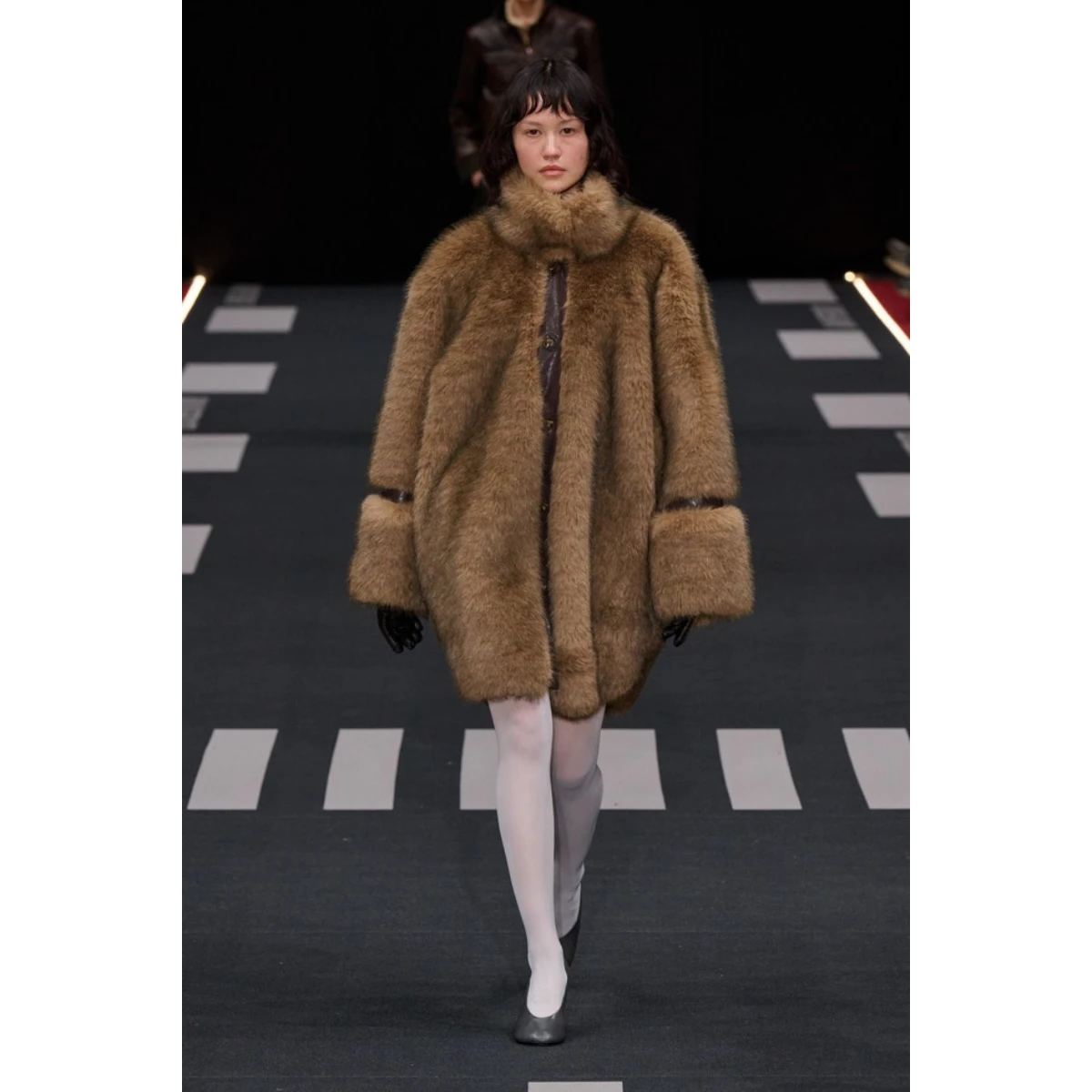 If faux fur coats aren’t for you, but you want to take advantage of the warmth and cosiness they bring, consider adding a touch of faux fur to your look via trims. Look towards the Amelia Earhart-inspired pieces at Baum Und Pferdgarten. The models were decked out with faux fur collars over forties-style dresses, keeping the look sleek and modern with leather bomber jackets. Gestuz, MUNTHE and The Garment all leaned into faux-fur-trim styling too, pairing it with utility jackets and denim.