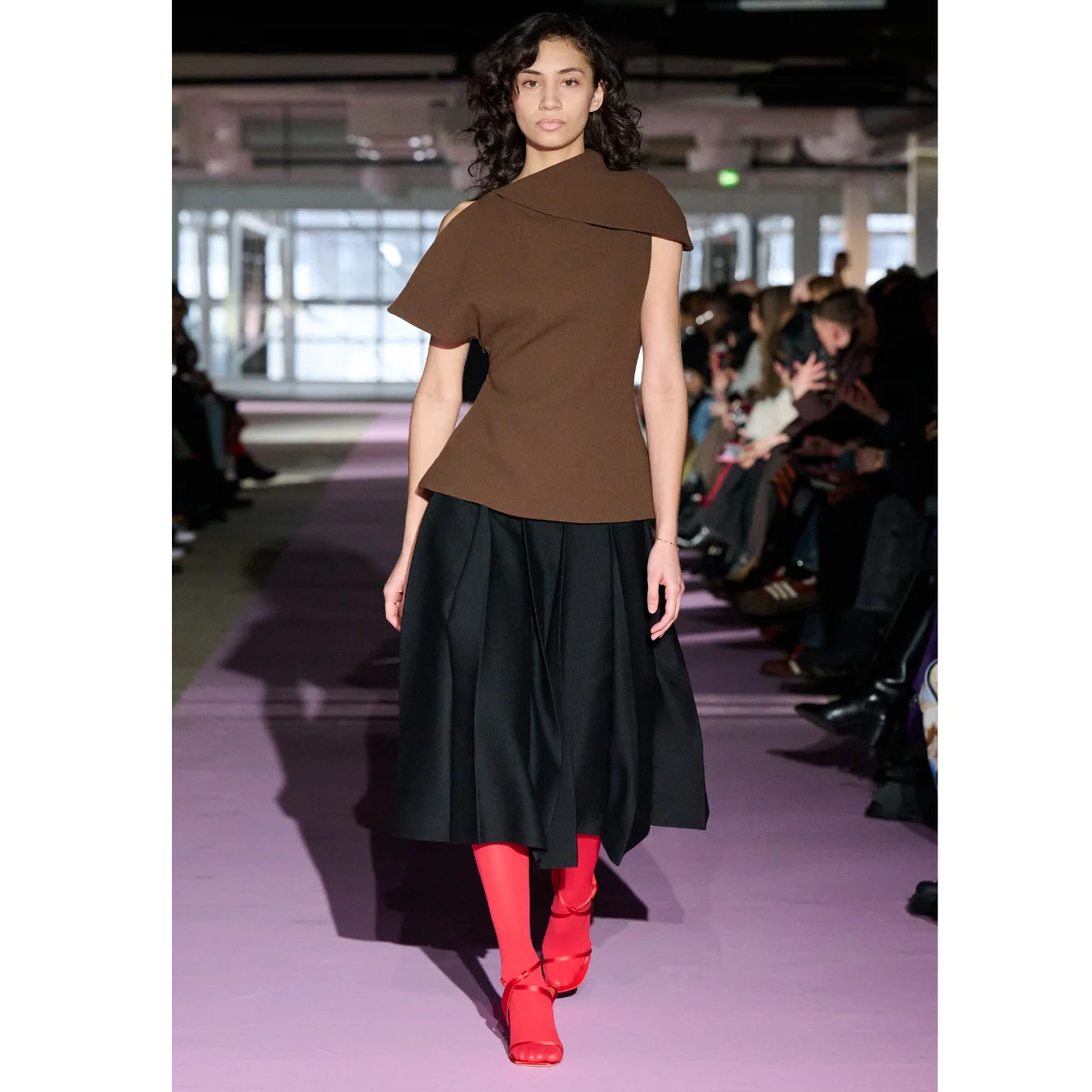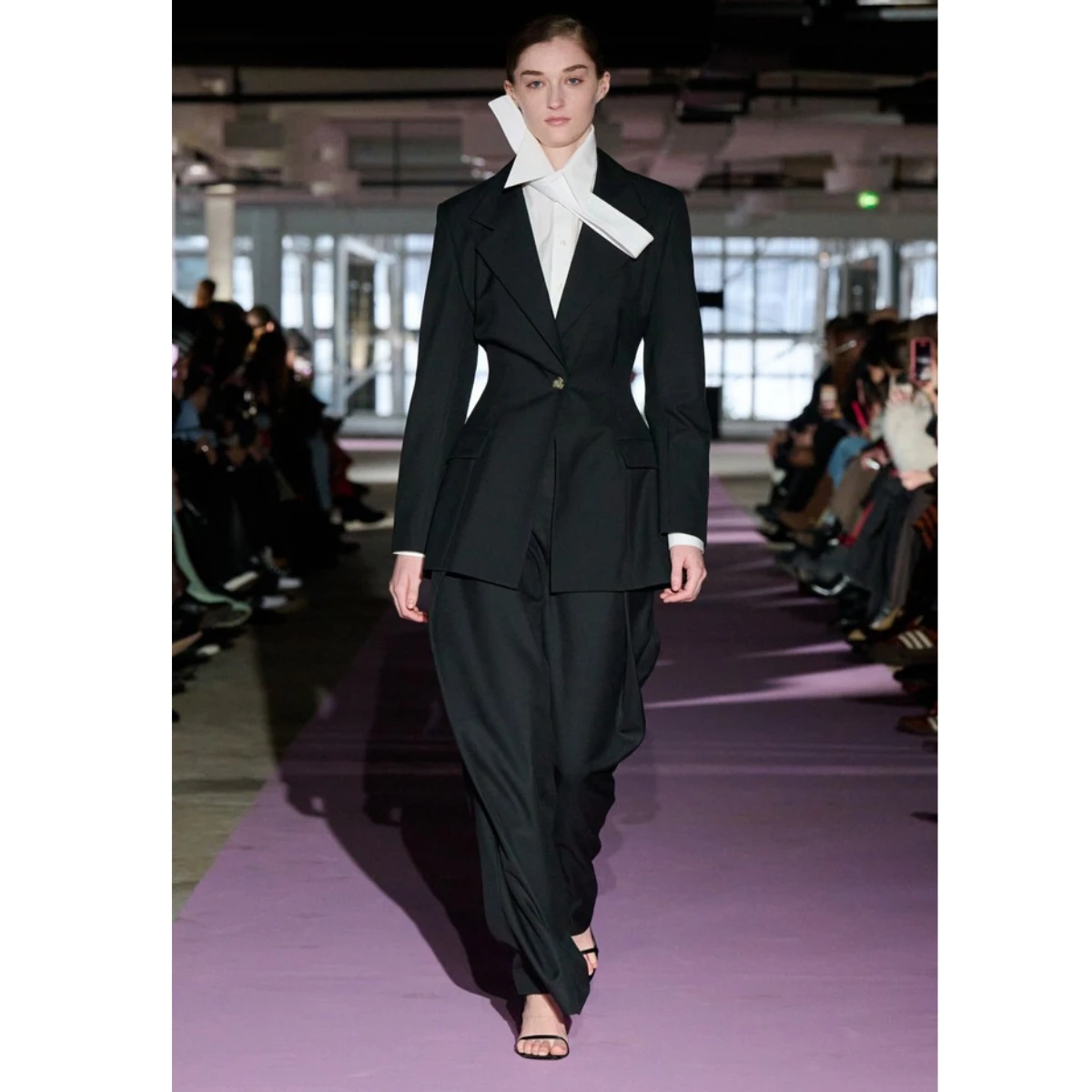 Whether long or short, the classic black dress was a staple on the Copenhagen catwalks. But the iterations were far from boring. Forza Collective showcased cutout and sheer styles; Rave Review styled with argyle tights. The Garment embraced the blazer dress, reworking it as a one-shoulder style, while Taus went super long and draped it with a floor-skimming style.