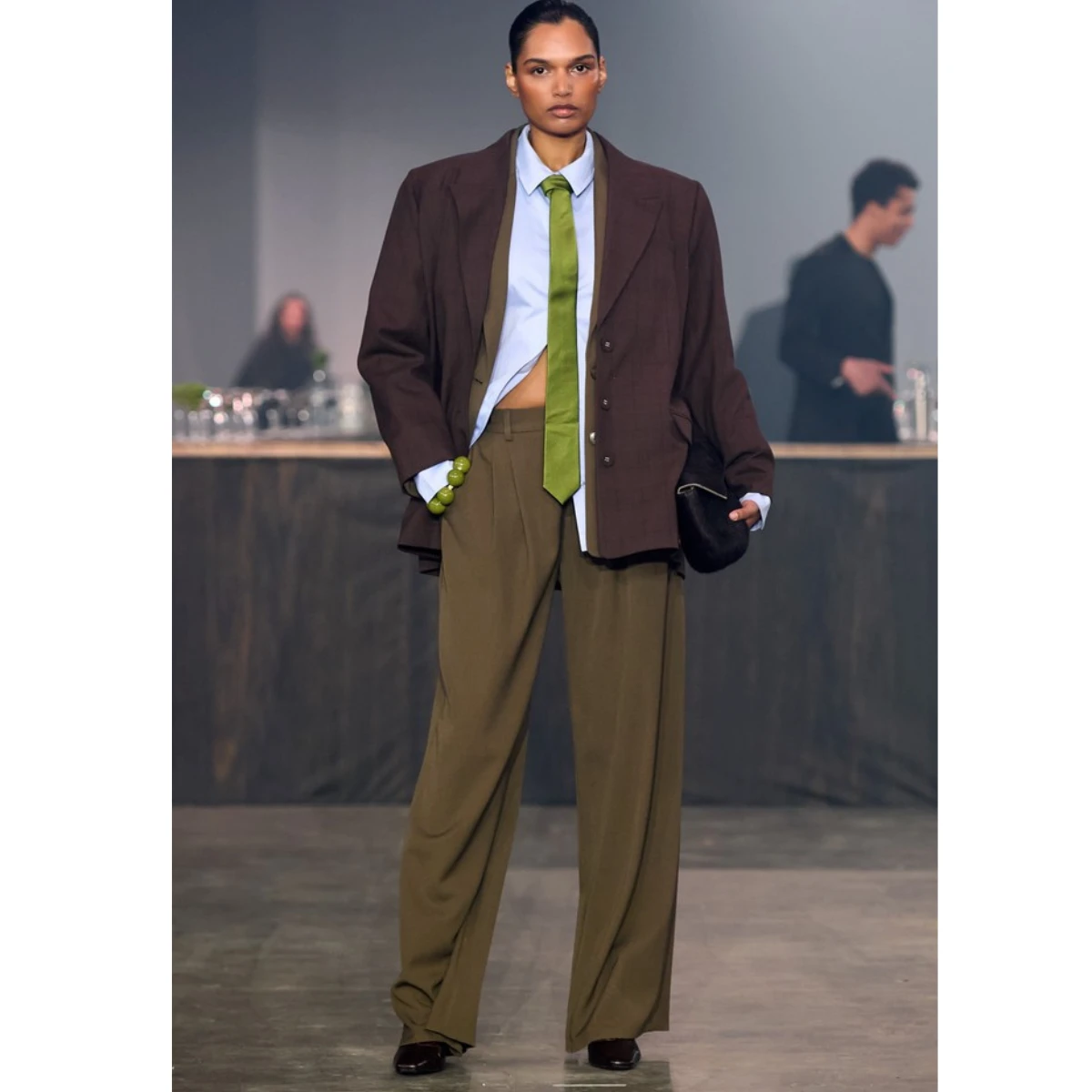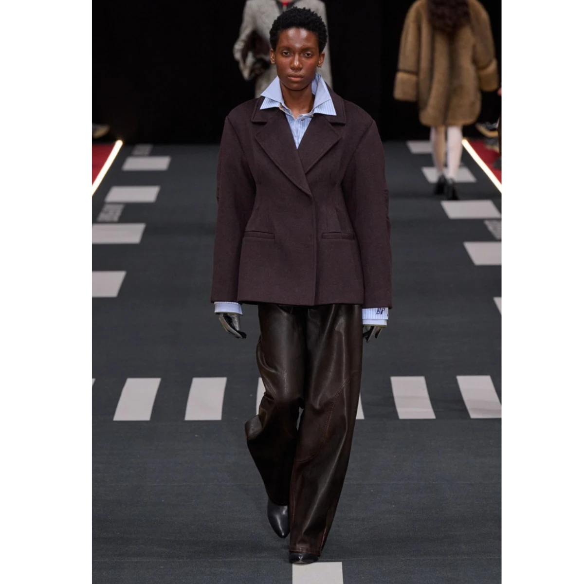 Cold-weather headgear was a trend on and off the catwalks, with furry toppers and leather headscarves among the hats spotted. But a chic alternative to the purely practical came in the form of berets. Spotted across multiple collections, they added a polish to relaxed ensembles of knits and silky trousers, as well as shearling coats. Less Emily in Paris, more Copenhagen cool.
