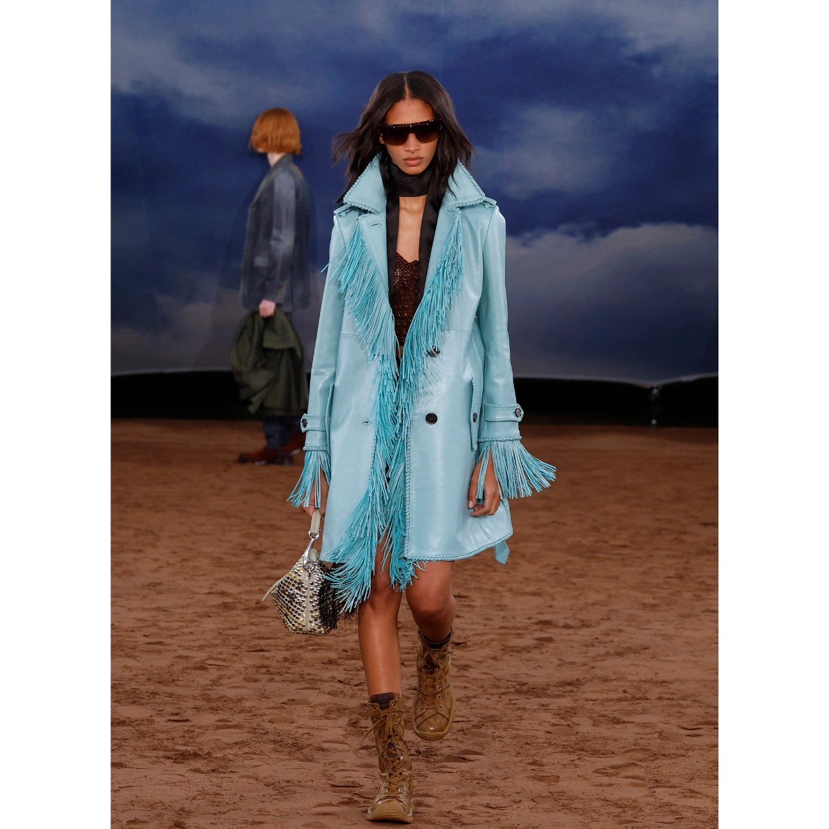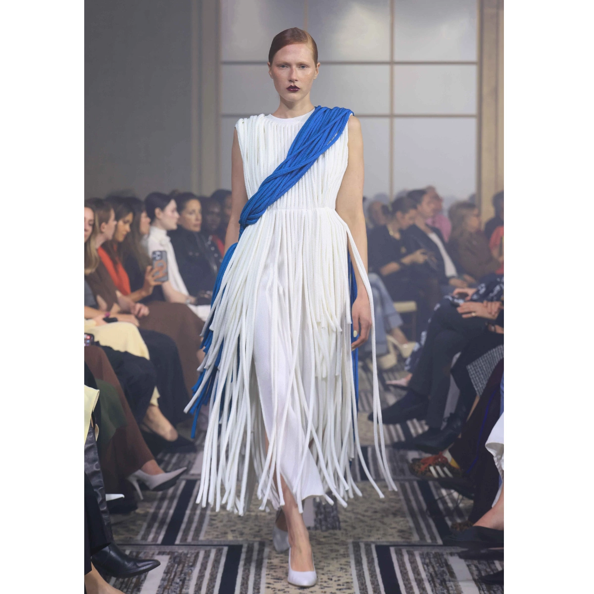 Swaying with every step, Burberry showcased swinging fringed jackets that added a rock ‘n’ roll edge to the buttery leather jackets. At Edeline Lee, thick layers of thread transformed classic silhouettes into a dynamic runway moment. While at Mark Fast, fringing finished off his signature crochet-knitted styles, giving them a seventies feel.