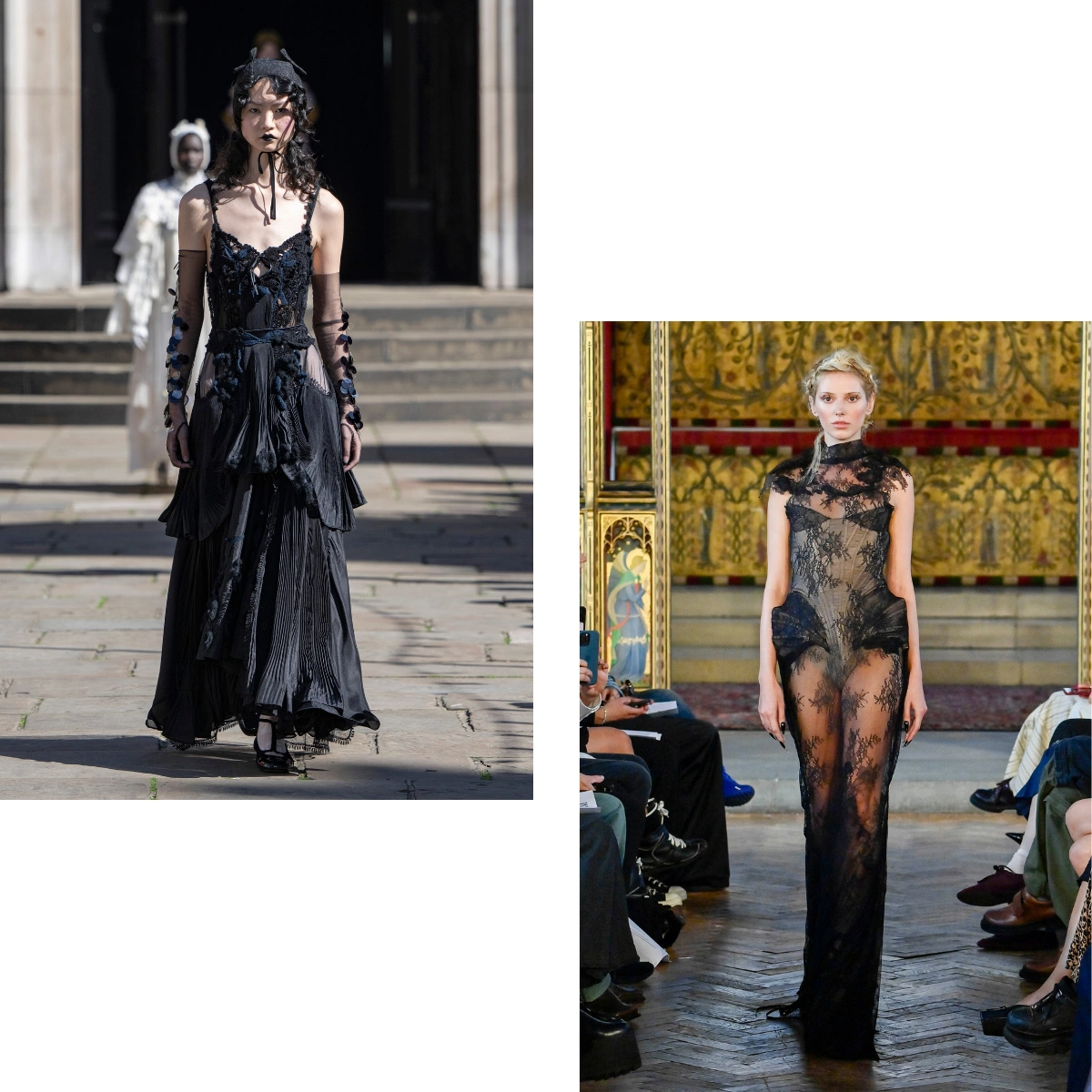 If florals, brights and all things springy aren’t your thing, don’t worry, as black is back for the warmer months with a little gothic-romantic twist. Dark romance styles featuring corsets, lace, and sheer fabrics were spotted at Bora Aksu, Chopova Lowena, Dujancourt, and Erdem.