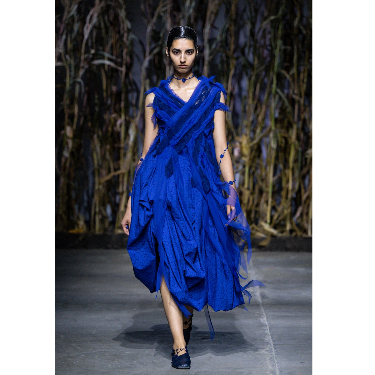 There was so much bright blue on the London Fashion Week runway that it deserves its own trend. Tailoring was given fresh energy at Tove and Edeline Lee, where clean-lined pieces were crafted in bold cobalt hues. Designers like Roksanda, Emilia Wickstead, and Dujancourt gave the statement colour a softer twist, embracing romantic silhouettes.