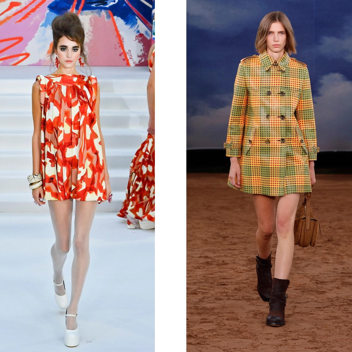 When Paul Costelloe opened London Fashion Week, models hit the runway with blue eyeshadow, fluttery lashes, and bouffant hair, to a soundtrack straight out of the sixties. The collection, inspired by Sharon Tate, featured sweet-hued pastel mini and bubble-hem dresses. The stylish decade also inspired designs at Rixo and Ahluwalia, while Burberry showcased mod-ish tailoring and Woodstock-worthy crochet dresses.