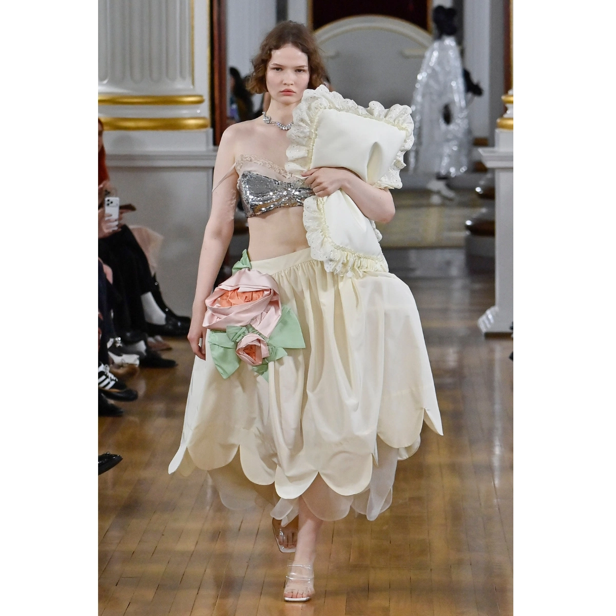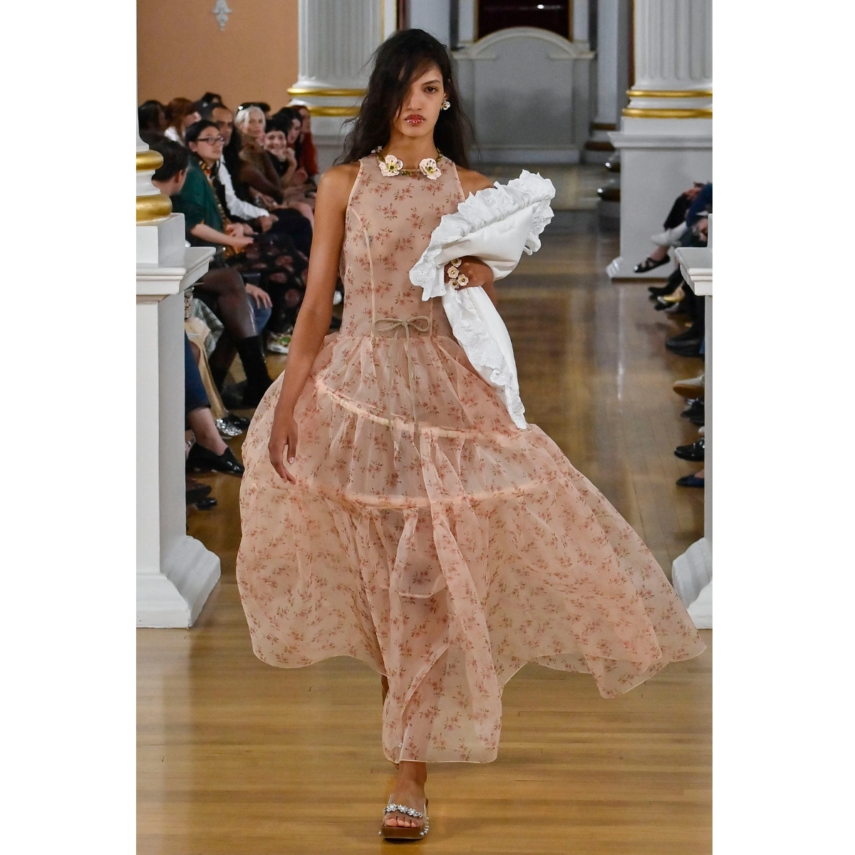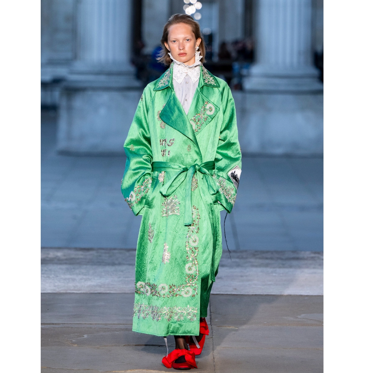 Simone Rocha’s gorgeous show was dreamy in more ways than one, turning the runway into a slumber party; models walked the runway clutching pillows. Rocha’s signature ruffled and sheer fabric dress added to the whimsical vibe. But it wasn’t just the Irish designer who embraced boudoir-inspired designs; Erdem also showcased stylish PJs-style co-ords and silky robe-coats that are too stylish for the bedroom alone.