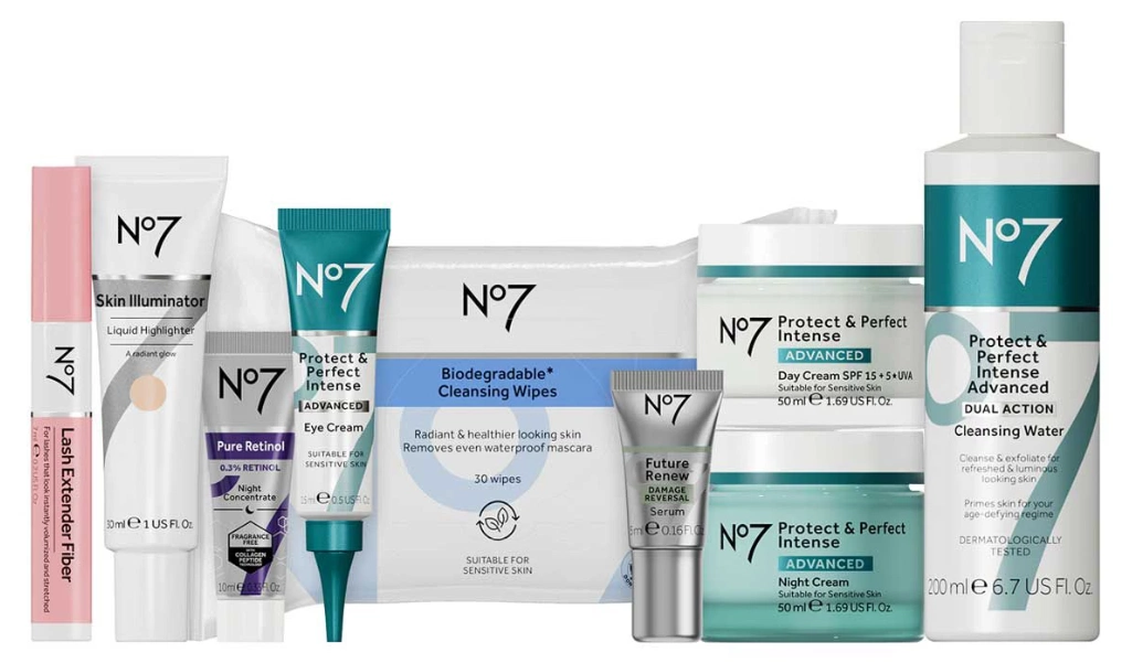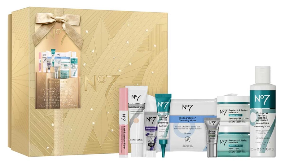 The No7 Ultimate Beauty Collection contains nine products across their award-winning skincare collections, seven of which are full-size.