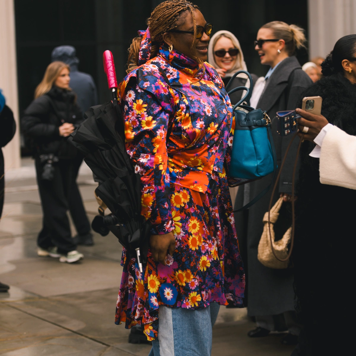 Grey took centre stage this season, spotlighted as the ultimate neutral, effortless and unashamedly chic. From soft to deep charcoal, this muted palette swept through the streets in matching sets, outerwear and oversized knits proving that subtlety can be just as commanding and bold as colour is. Suits in slate grey exuded quiet luxury, their sharp silhouettes softened by draped wool coats while the chunkiest knits paired with slouchy trousers balanced cosiness with sophistication. Plus accessories such as hats added depth to the monochrome moment. Whether styled in full tonal looks or just as an accent to much bolder pieces, grey’s versatility and timeless appeal were undeniable. This season, it wasn’t just a colour, it was a statement in understated elegance, proving that minimalism never ever has to be boring.